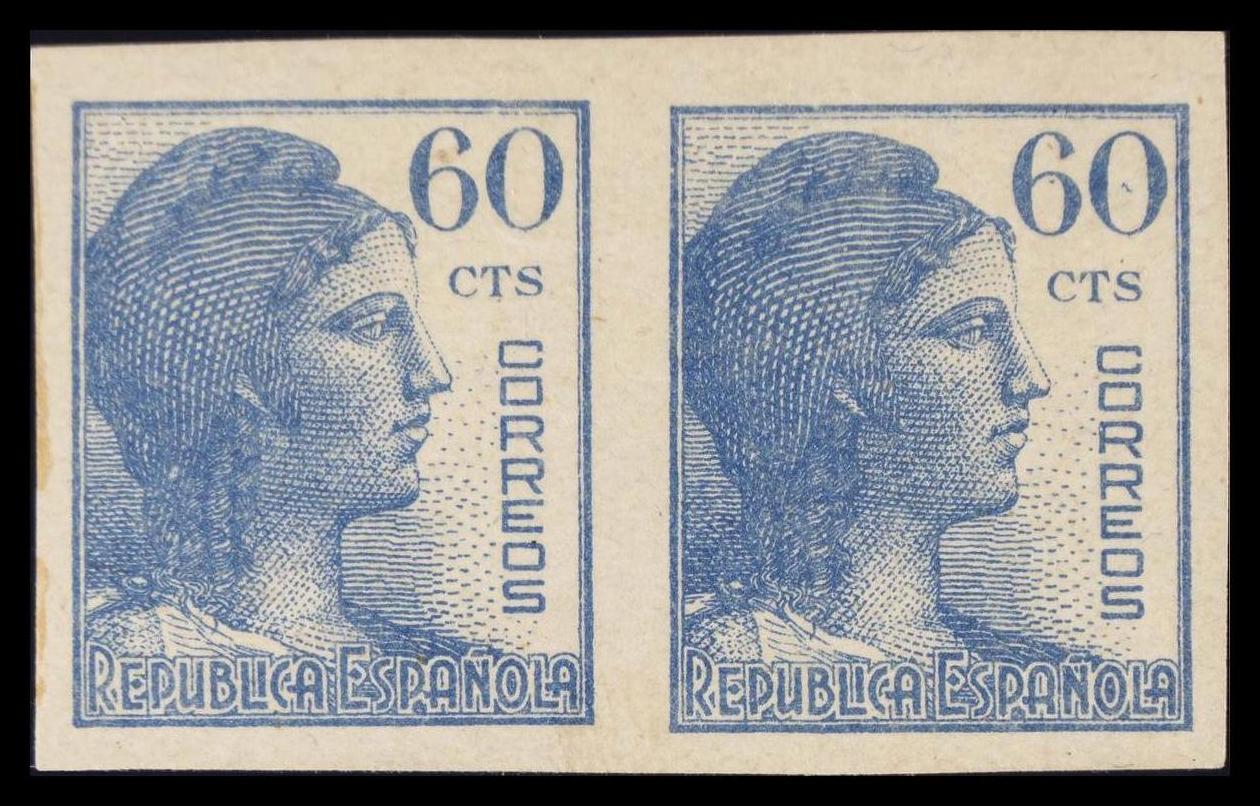 ★ 754s(2). 1938. 60 cts azul, pareja. SIN DENTAR. MAGNIFICA. Edifil 2020: +74 Euros