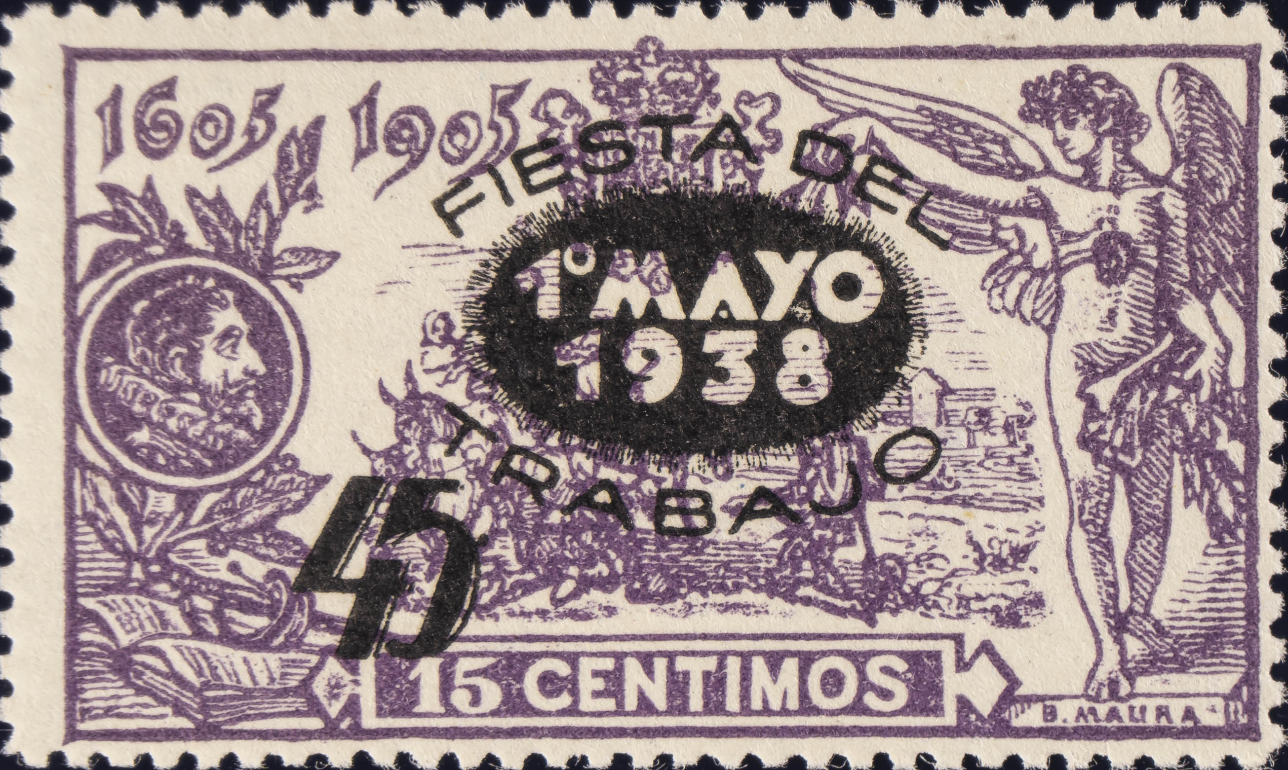 ★ 761. 1938. 45 cts sobre 15 cts violeta. MAGNIFICO. Edifil 2020: 3 Euros