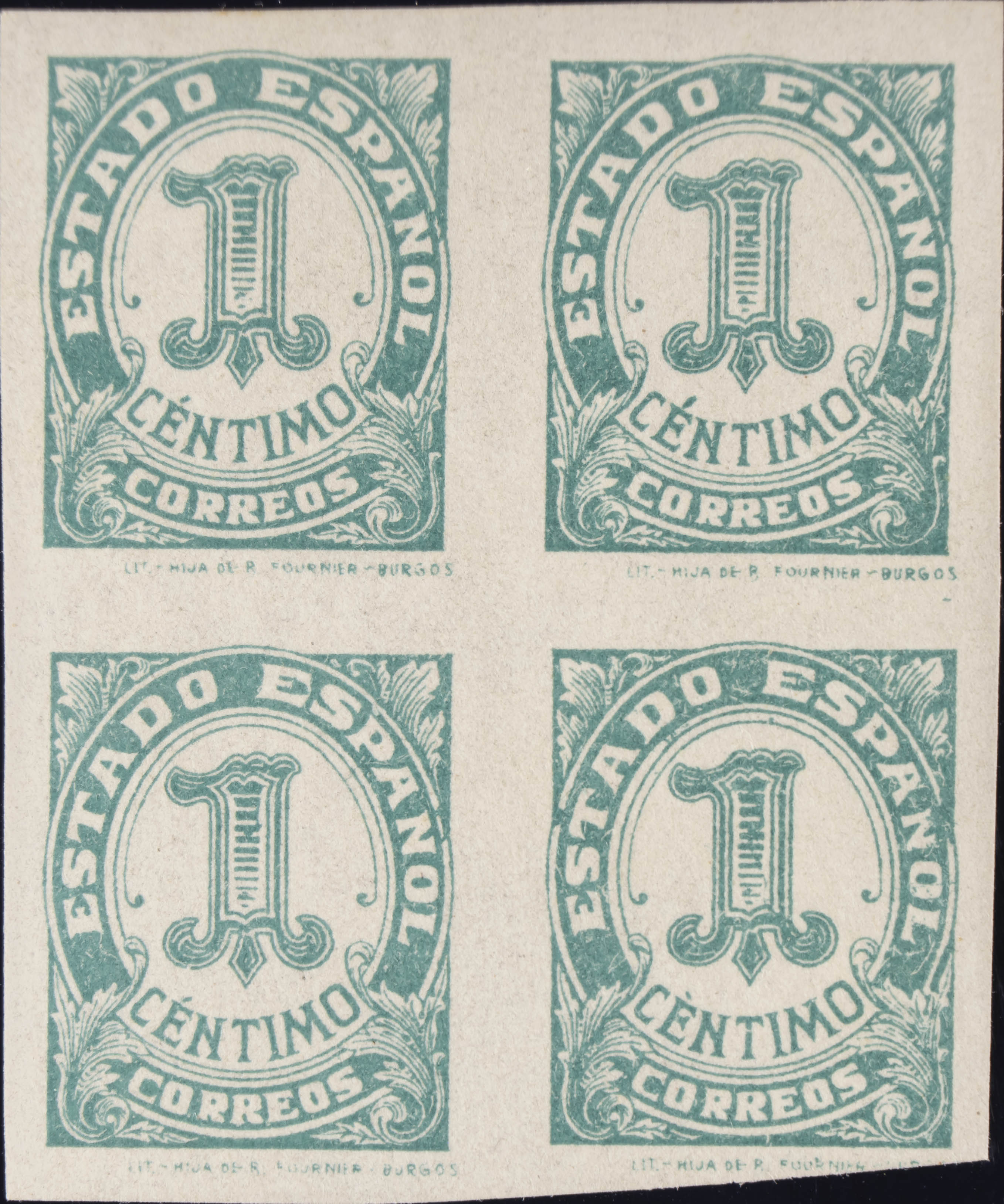 ★★ 814(4). 1937. 1 cts verde, bloque de cuatro. MAGNIFICO.