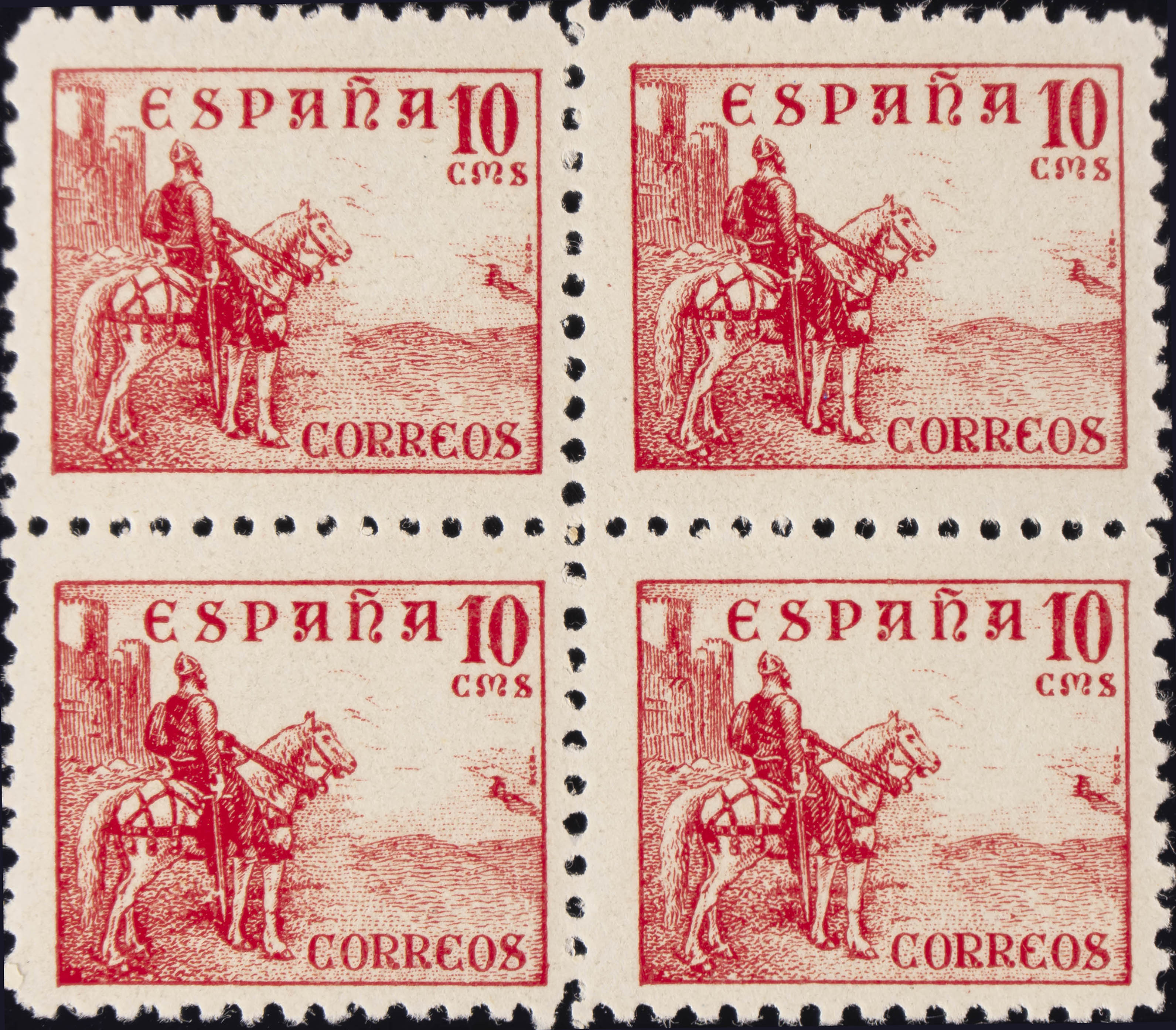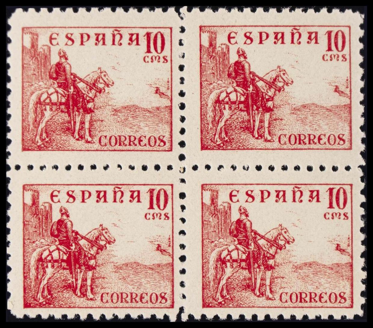 ★★ 818(4). 1939. 10 cts rojo, bloque de cuatro. MAGNIFICO.