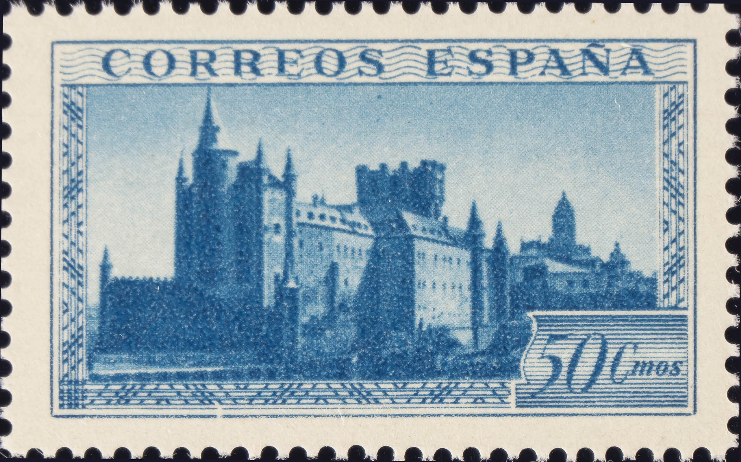 ★★ SH847C. 1938. 50 cts azul, procedente de la hoja bloque. MAGNIFICO. Edifil 2015: 23 Euros