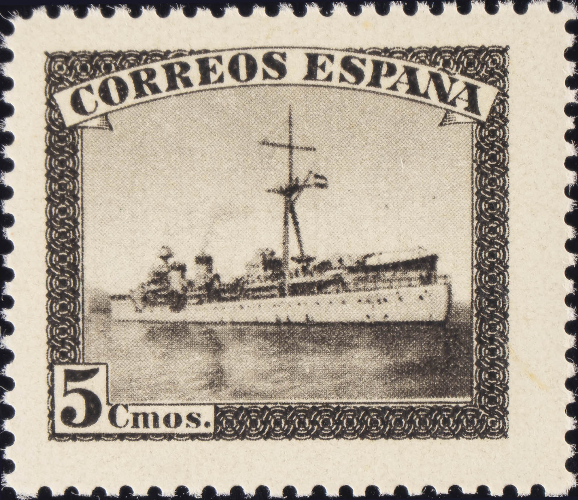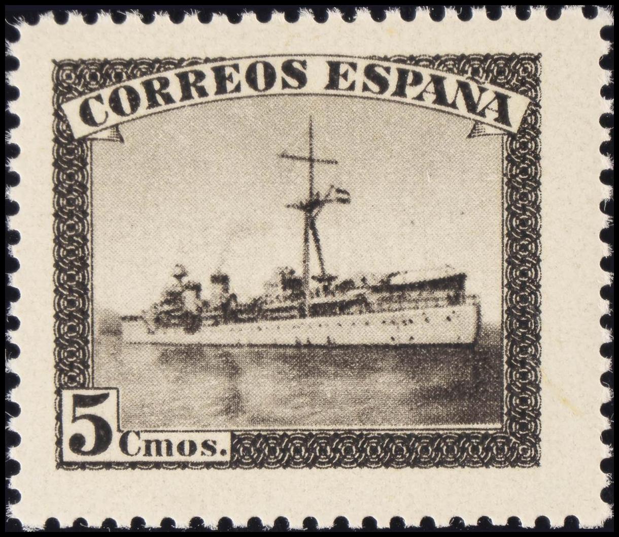 ★★ SH849F. 1938. 5 cts castaño, procedente de la hoja bloque. MAGNIFICO. Edifil 2015: 2,8 Euros