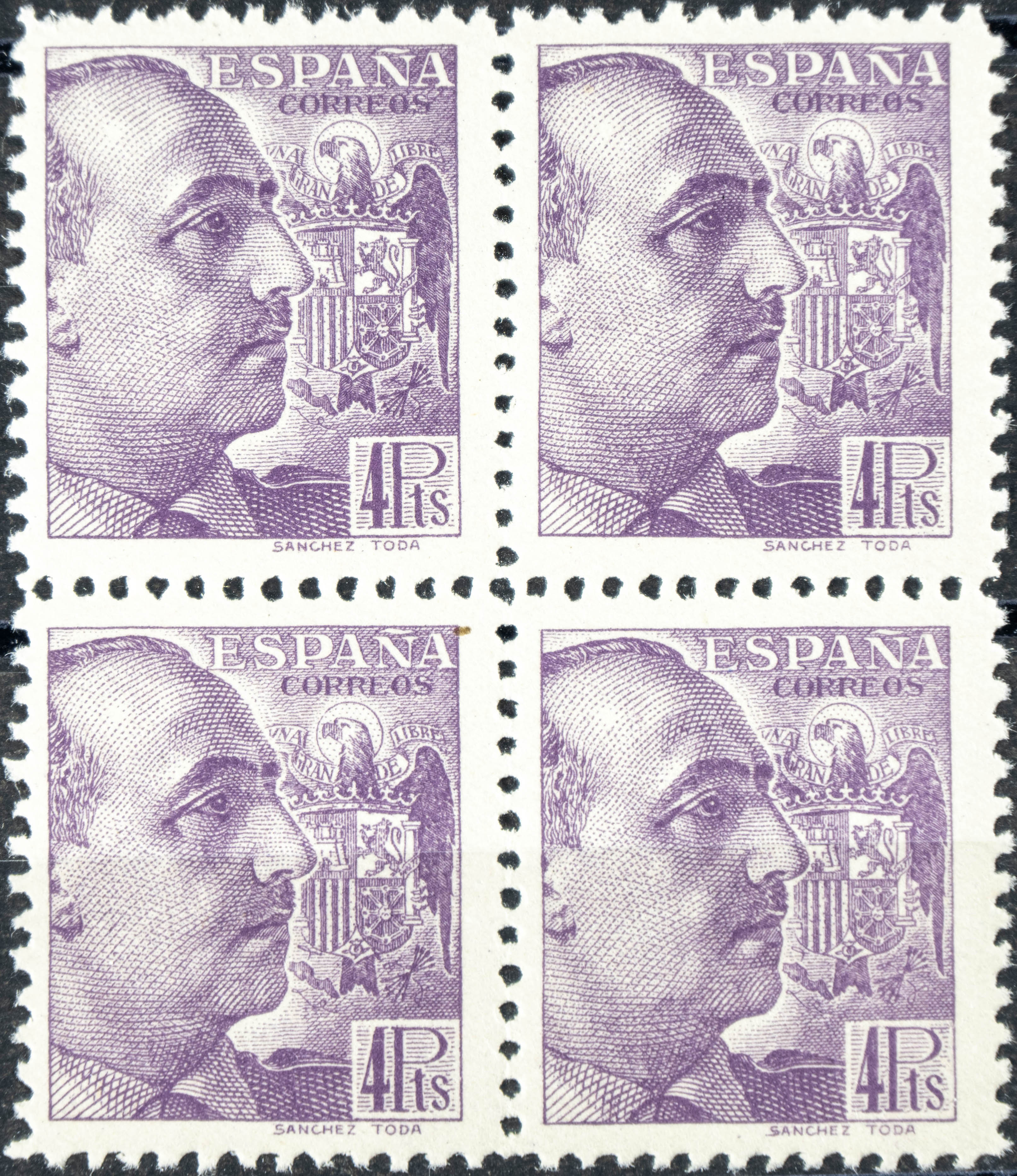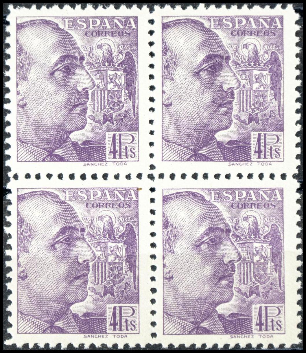 ★★ 877(4). 1939. 4 pts violeta, bloque de cuatro. MAGNIFICO. Edifil 2020: +560 Euros