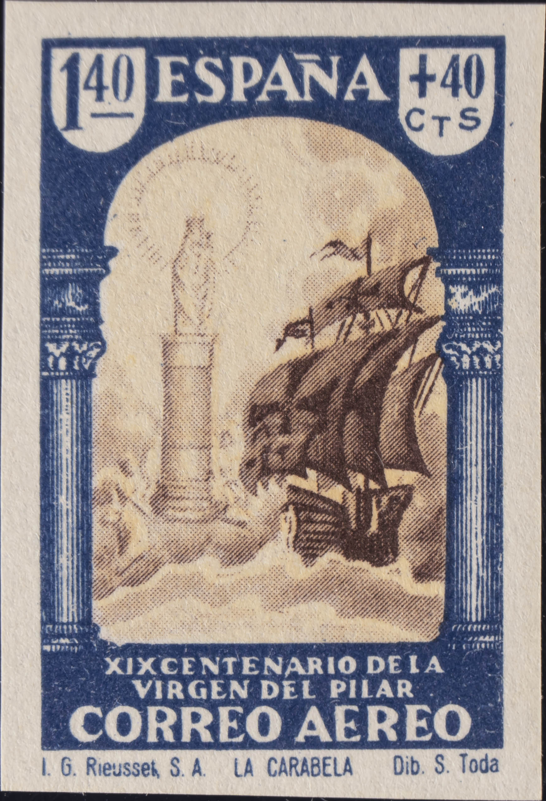 ★★ 910s. 1940. 1´40 pts+40 cts azul y sepia. SIN DENTAR. MAGNIFICO. Edifil 2015: 66,5 Euros