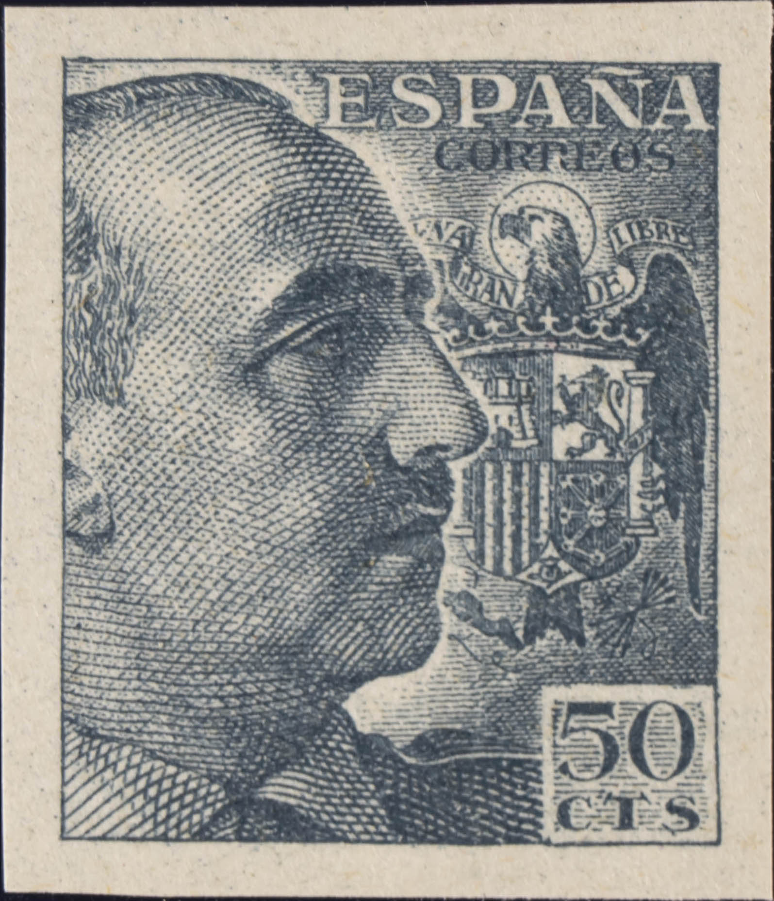 ★★ 927s. 1940. 50 cts gris. SIN DENTAR. MAGNIFICO. Edifil 2020: 23 Euros