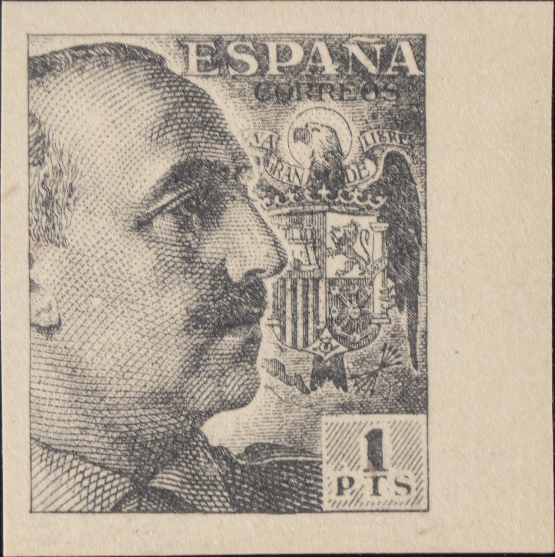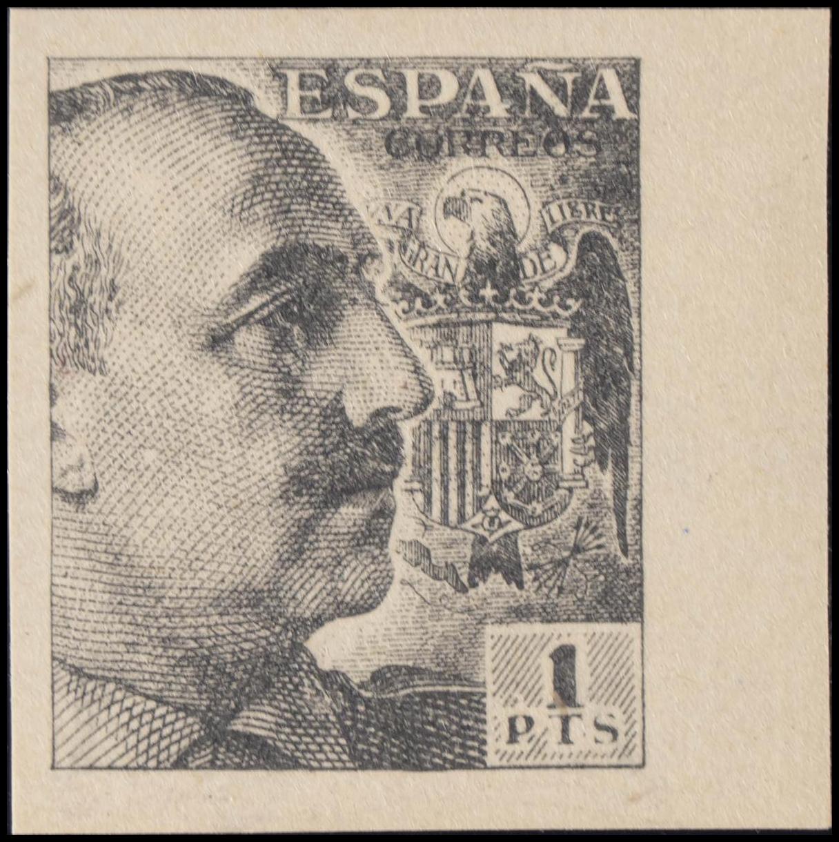 ★★ 931s. 1943. 1 pts negro, borde de hoja. SIN DENTAR. MAGNIFICO Y RARO. Edifil 2020: 705 Euros