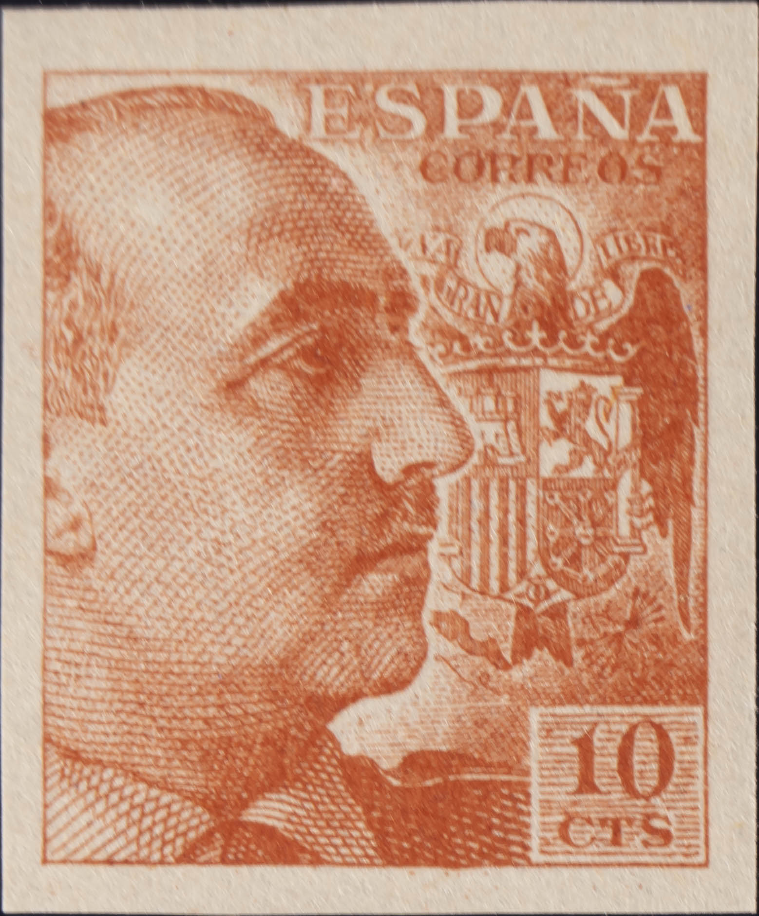 ★ 920s. 1940. 10 cts castaño naranja, borde de hoja. SIN DENTAR. MAGNIFICO. Edifil 2020: 137 Euros