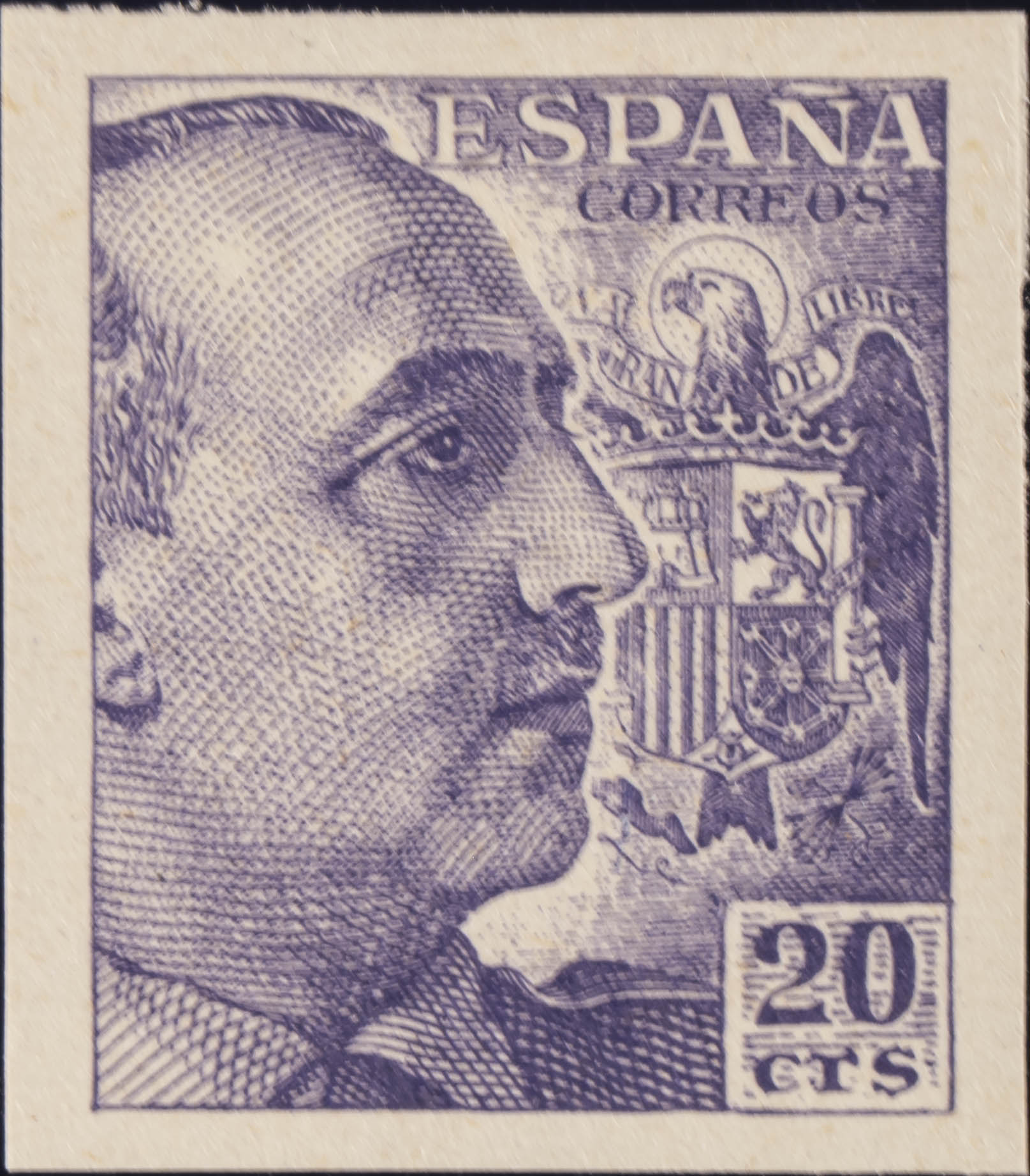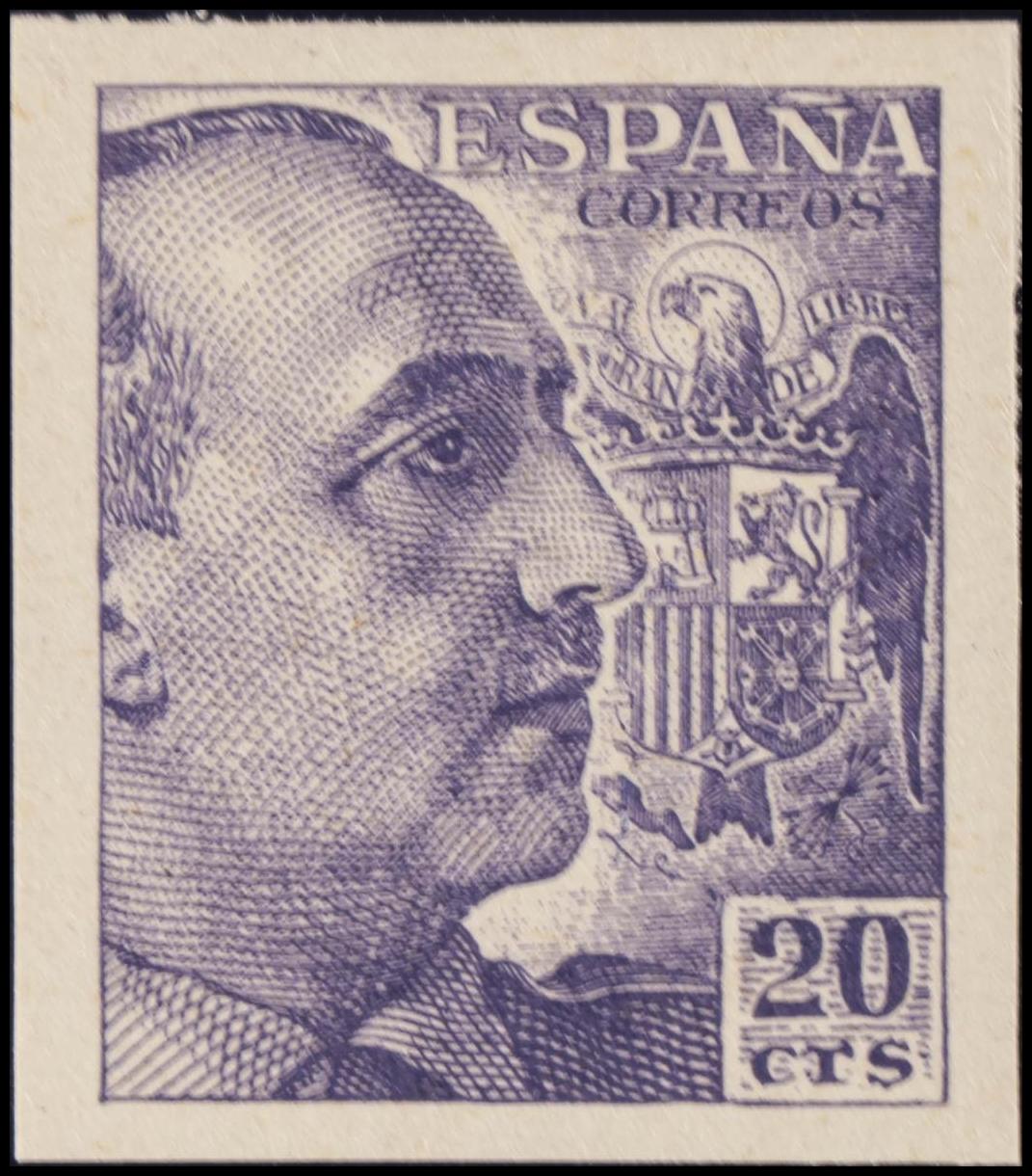 ★★ 922s. 1940. 20 cts violeta. SIN DENTAR. MAGNIFICO. Edifil 2020: 23 Euros