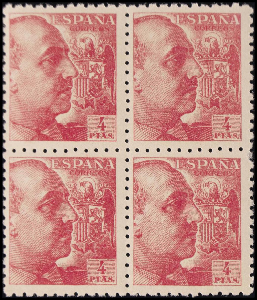 ★★ 933(4). 1940. 4 pts rosa, bloque de cuatro. MAGNIFICO. Edifil 2020: 152 Euros