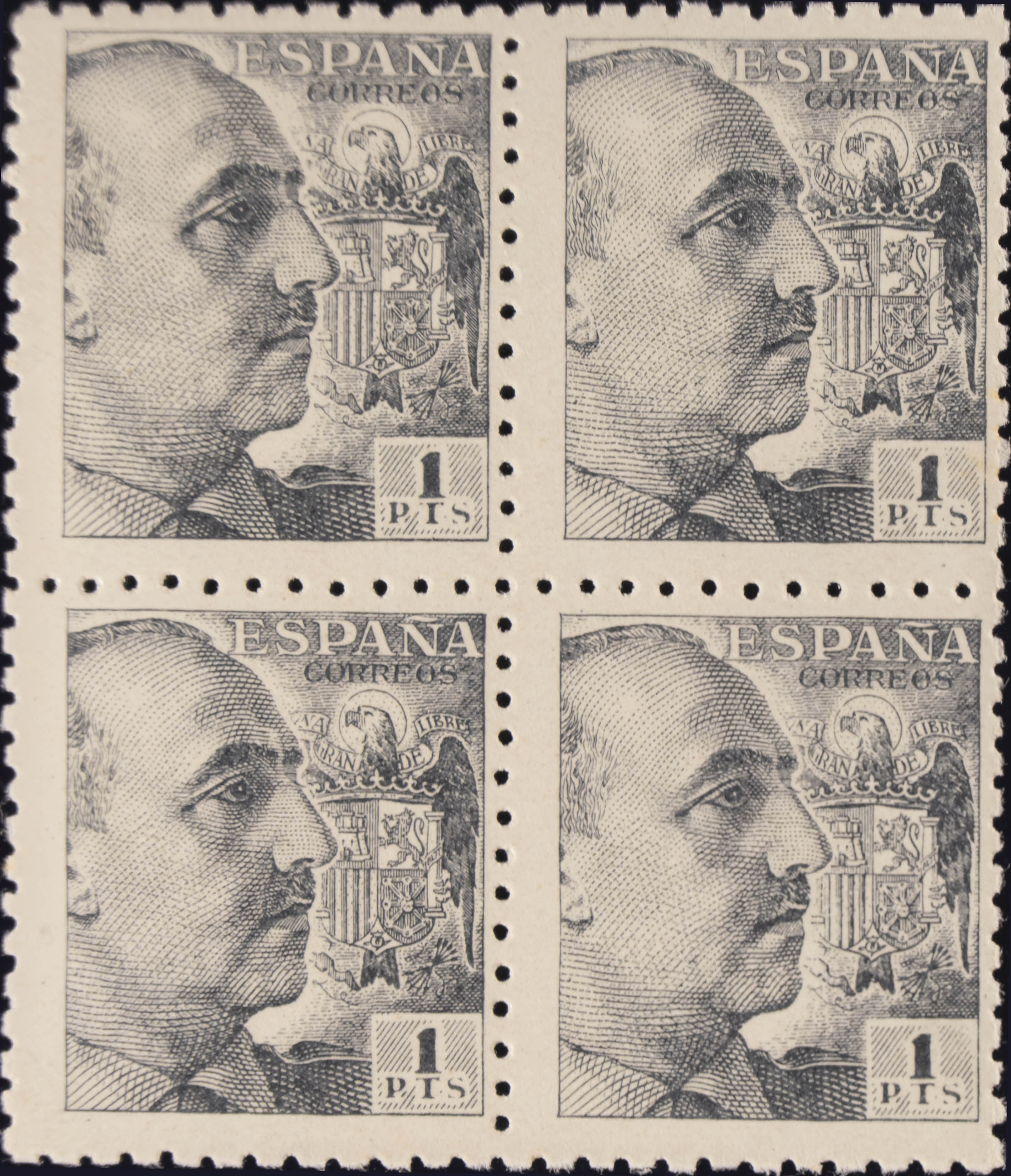 ★★ 931(4). 1943. 1 pts negro gris, bloque de cuatro. MAGNIFICO. Edifil 2020: +360 Euros