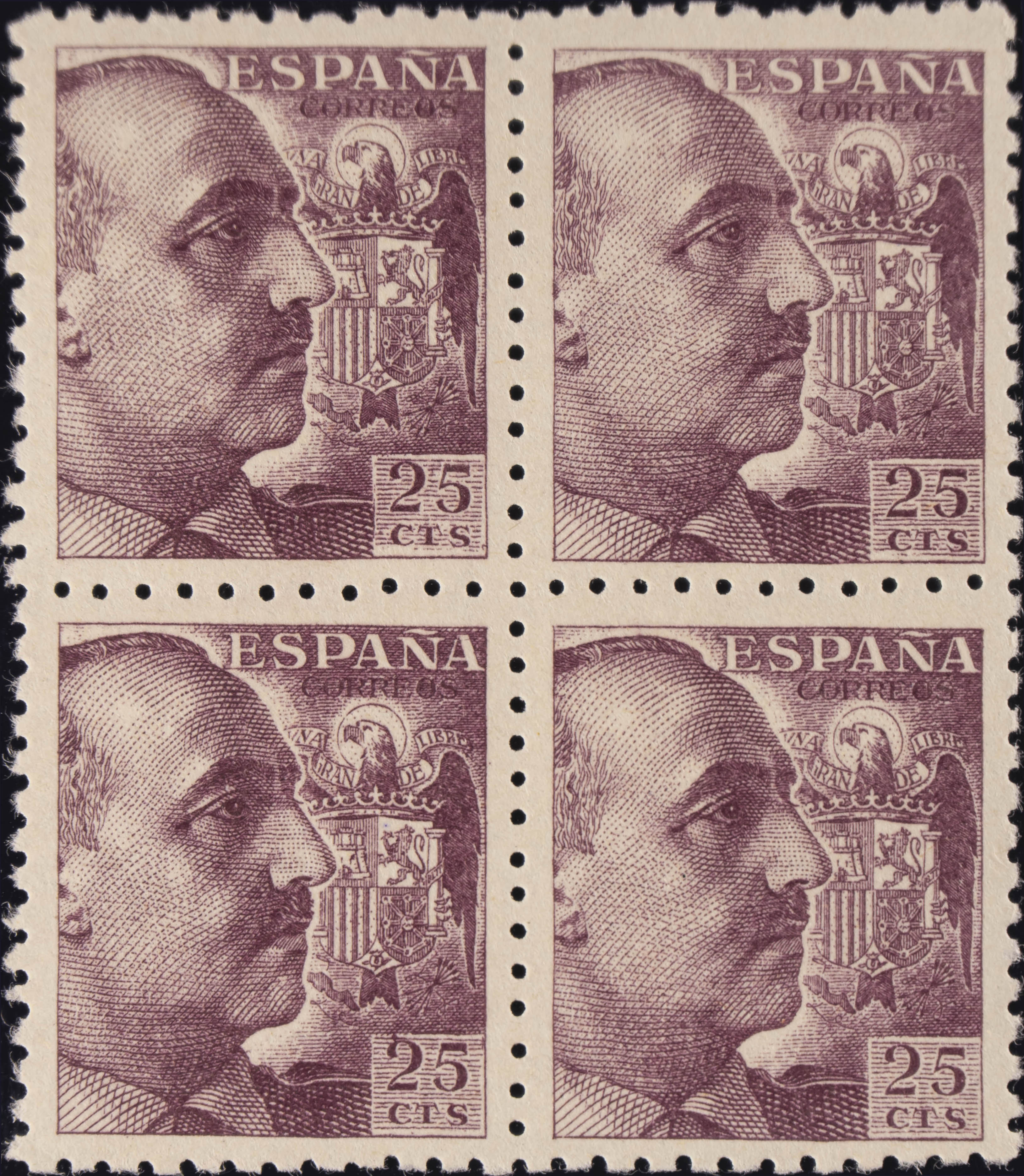 ★★ 923(4). 1940. 25 cts lila carmÃn, bloque de cuatro. MAGNIFICO. Edifil 2020: +2,8 Euros