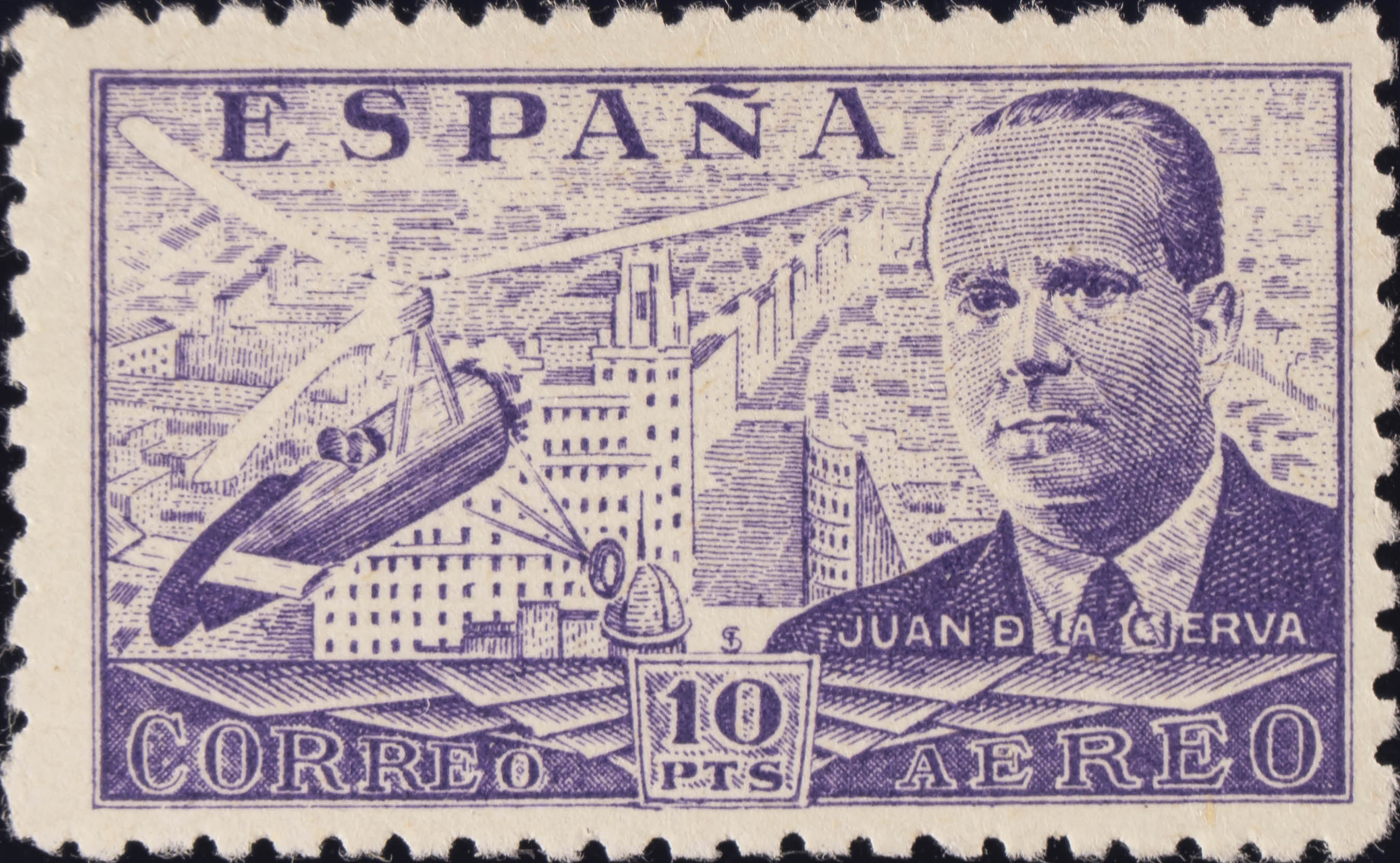 ★ 947. 1947. 10 pts violeta. MAGNIFICO. Edifil 2020: 4 Euros