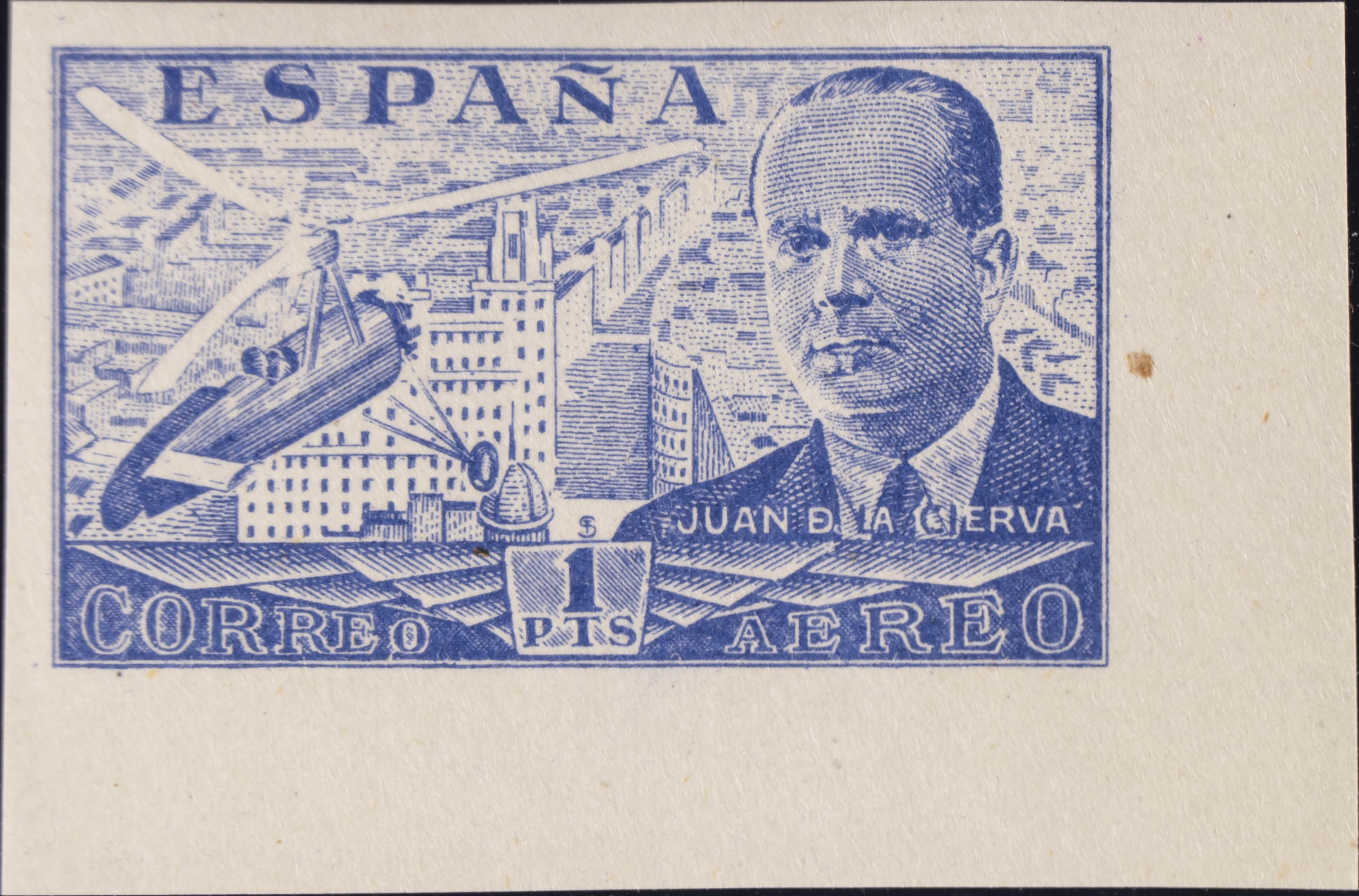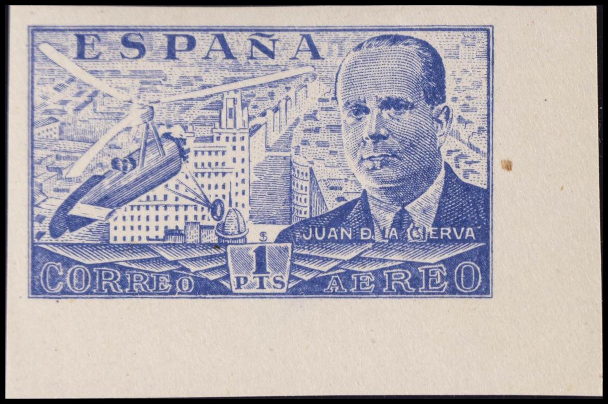 ★★ 944s. 1941. 1 pts azul, esquina de pliego. SIN DENTAR. MAGNIFICO. Edifil 2020: 14,25 Euros