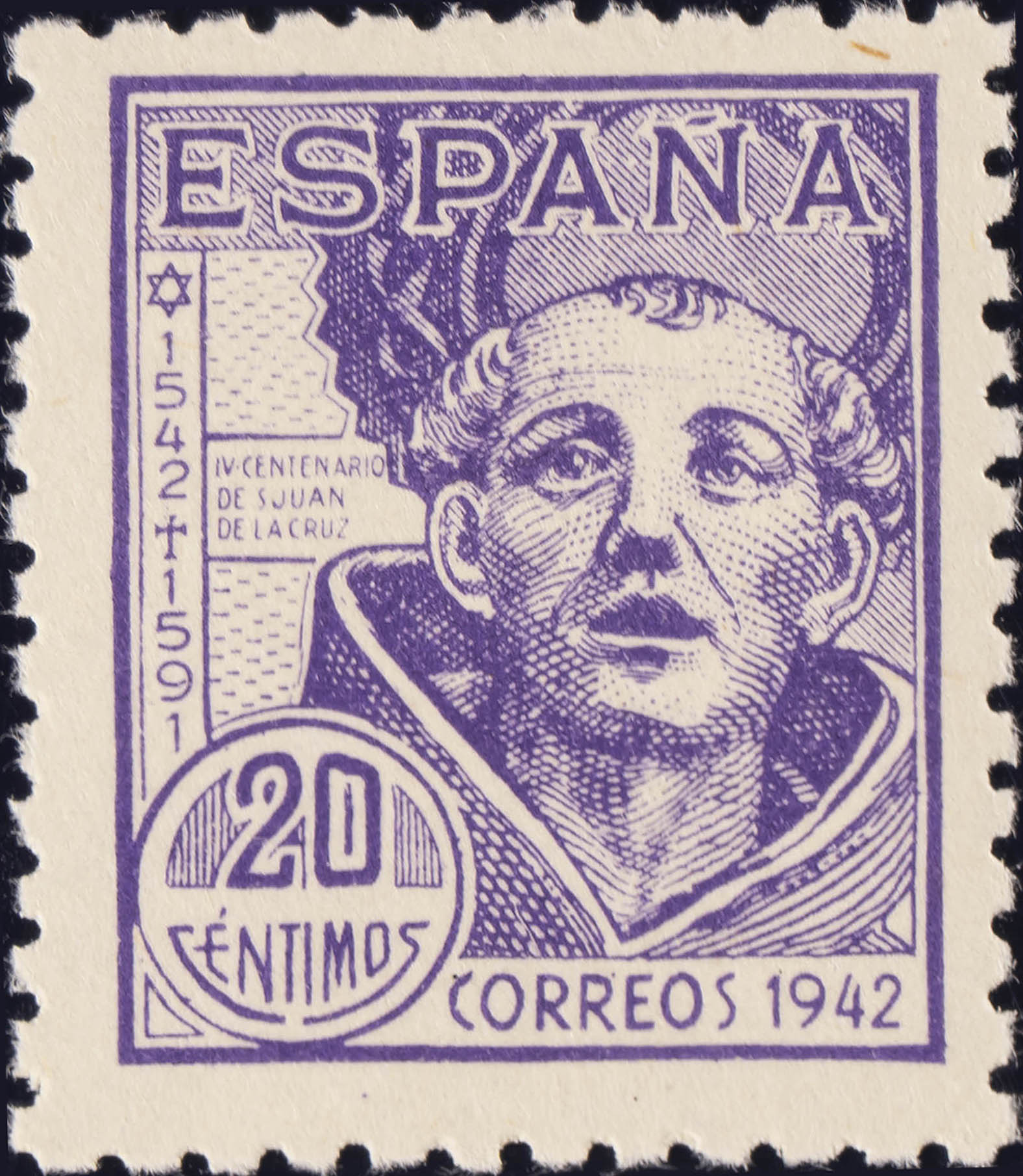 ★★ 954. 1942. 20 cts violeta. MAGNIFICO.