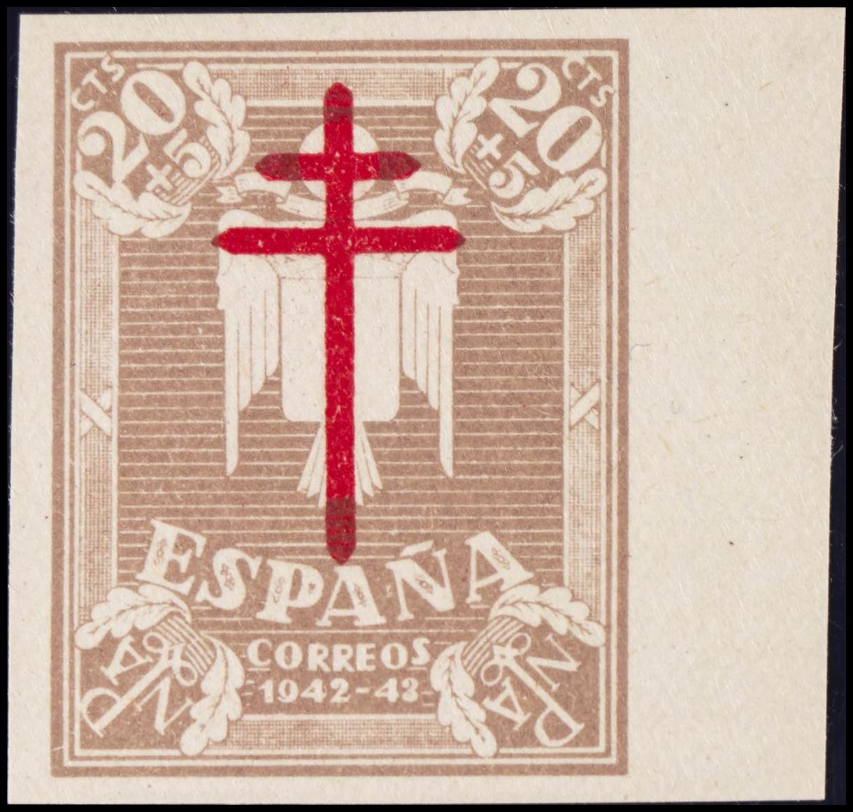 ★ 958s. 1942. 20 cts+5 cts castaño, borde de hoja. SIN DENTAR. MAGNIFICO. Edifil 2020: 65 Euros