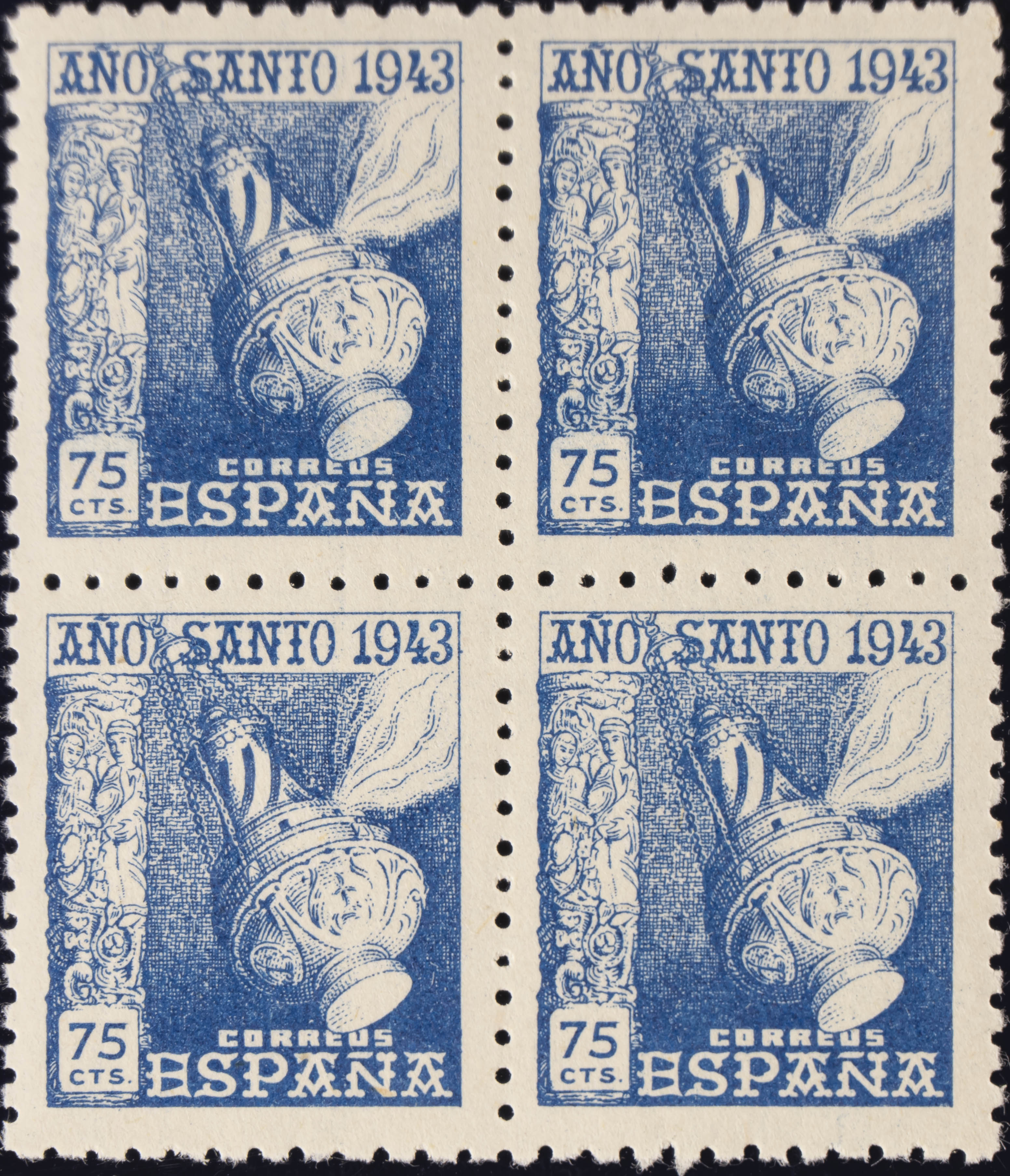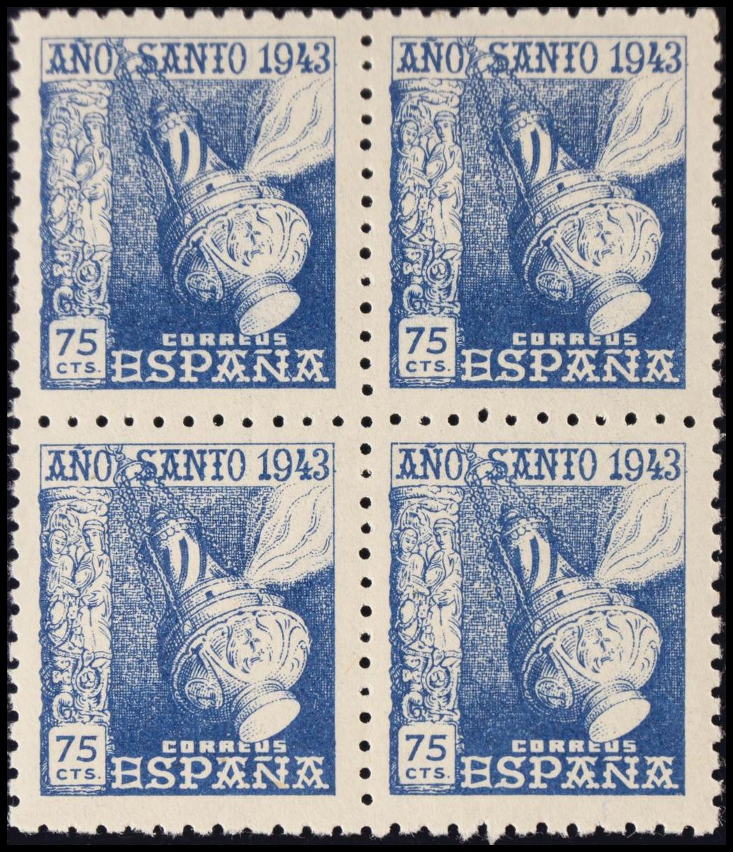 ★★ 963(4). 1943. 75 cts azul, bloque de cuatro. MAGNIFICO. Edifil 2020: +22 Euros