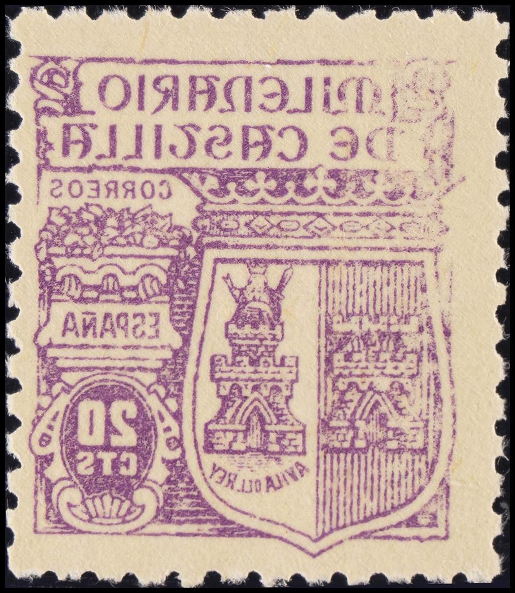 ★★ 980ic. 1944. 20 cts lila. CALCADO AL DORSO. MAGNIFICO. Edifil 2015: +11,5 Euros