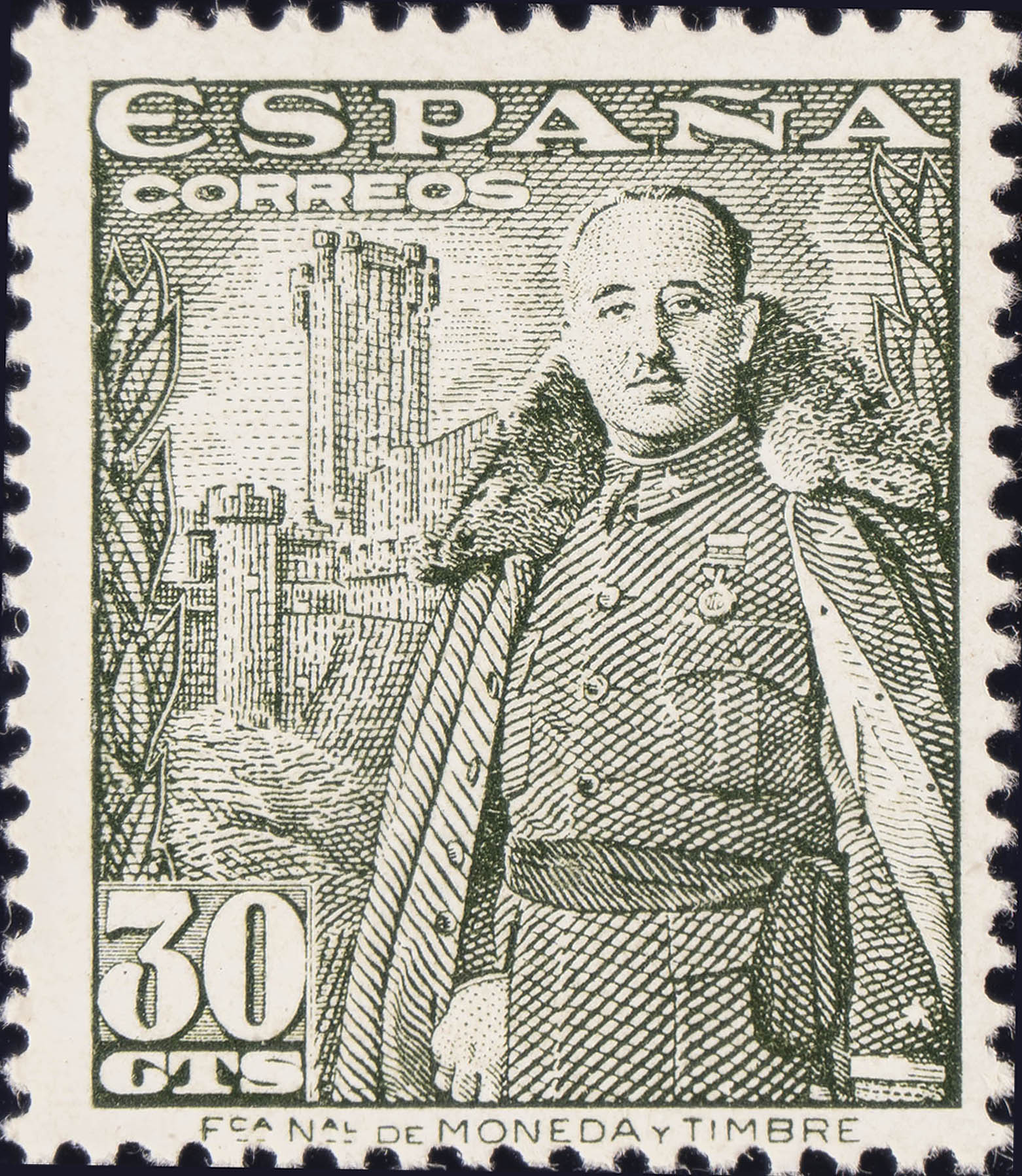 ★★ 1025. 1954. 30 cts verde oliva. MAGNIFICO.
