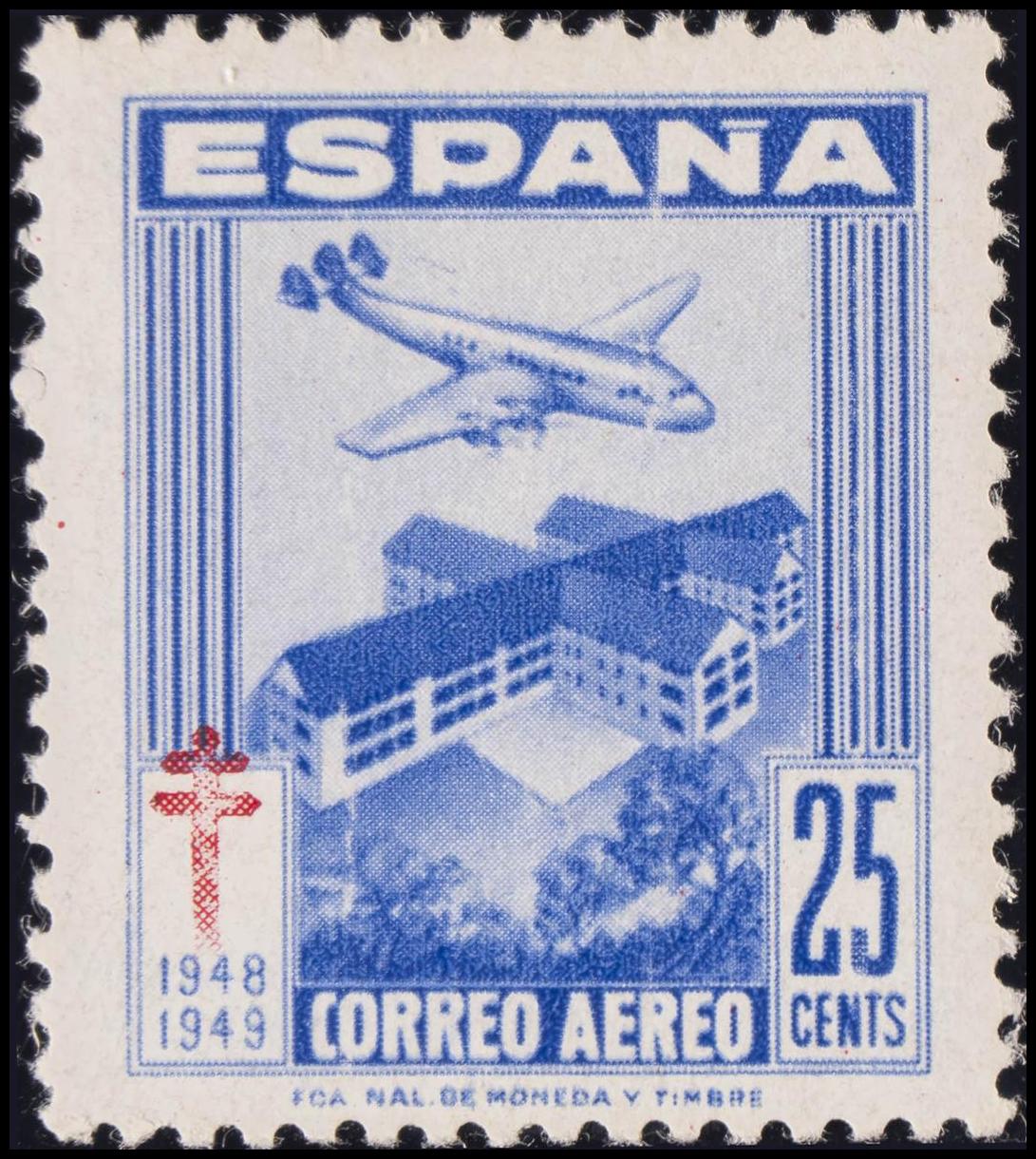 ★ 1043id. 1948. 25 cts ultramar. CRUZ DE LORENA DESPLAZADA HACIA ARRIBA. MAGNIFICO. Edifil 2015: 22,5 Euros