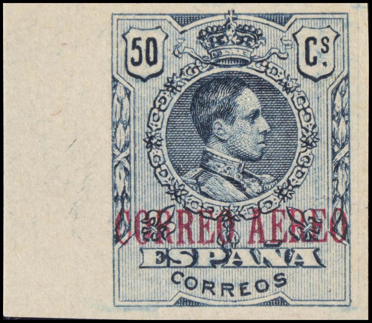★★ 295s. 1920. 50 cts azul verdoso, borde de hoja. SIN DENTAR. MAGNIFICO. Edifil 2020: +++140 Euros
