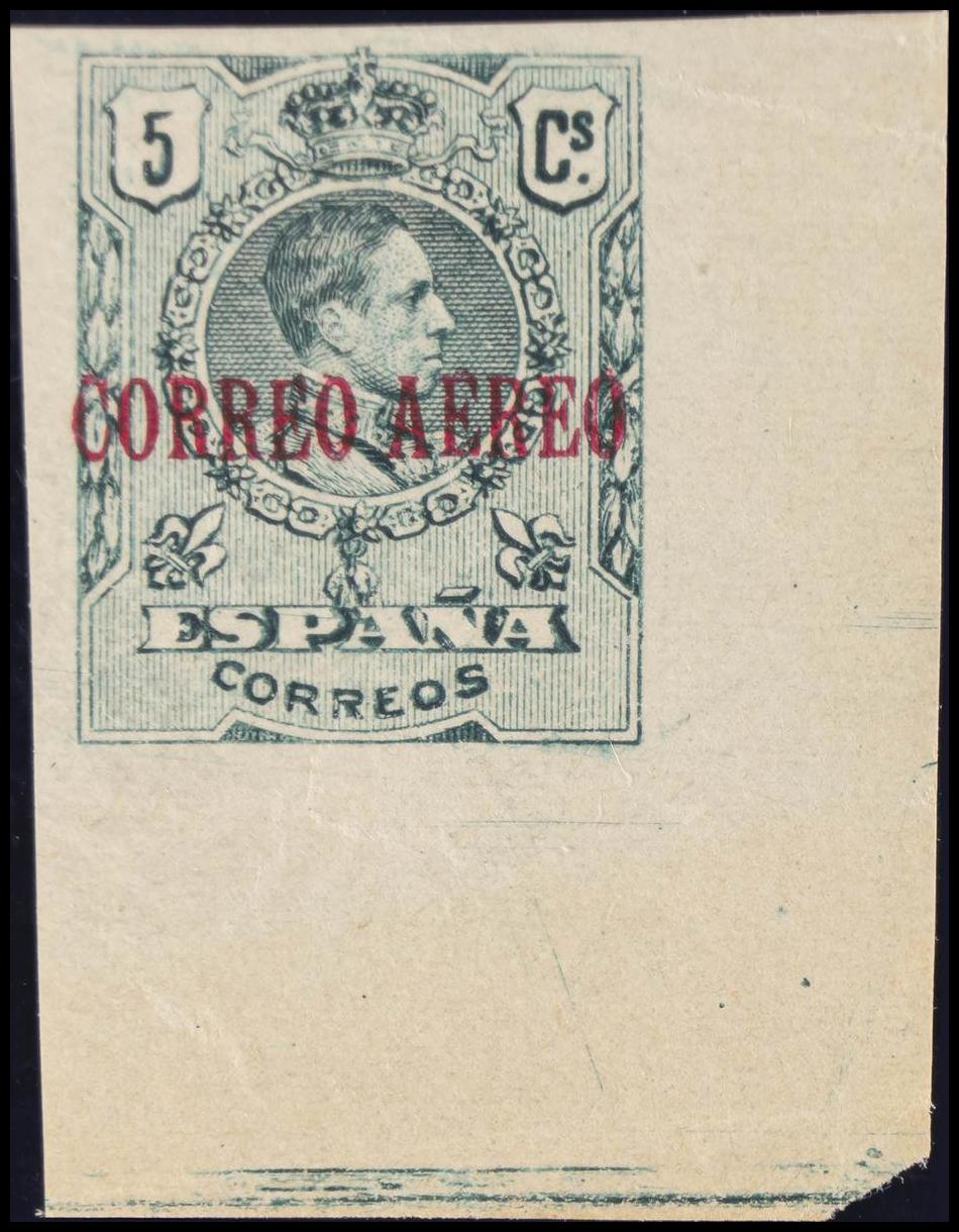 ★★ 292s. 1920. 5 cts verde, esquina de pliego. SIN DENTAR. MAGNIFICO. Edifil 2020: +++140 Euros