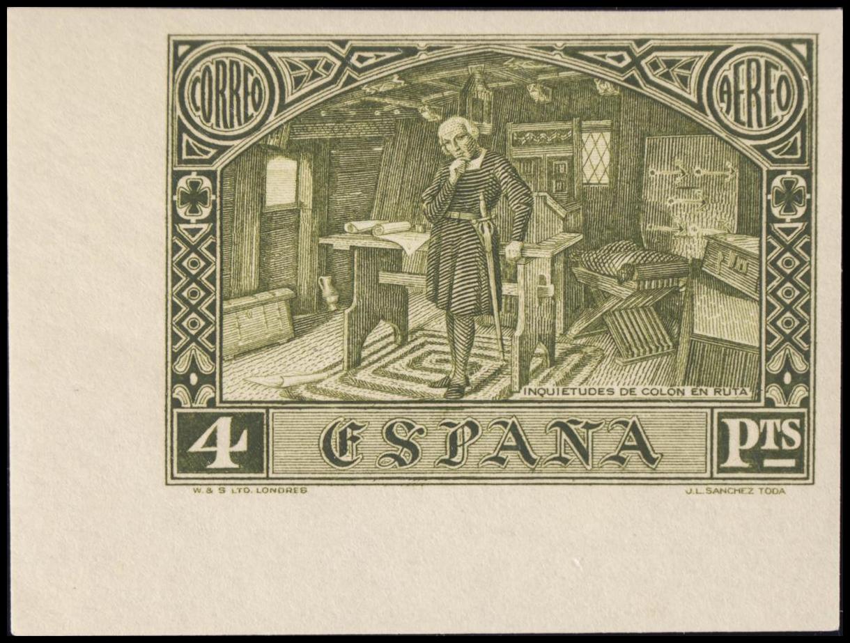★★ 557s. 1930. 4 pts verde oliva, esquina de pliego. SIN DENTAR. MAGNIFICO. Edifil 2015: +25,75 Euros