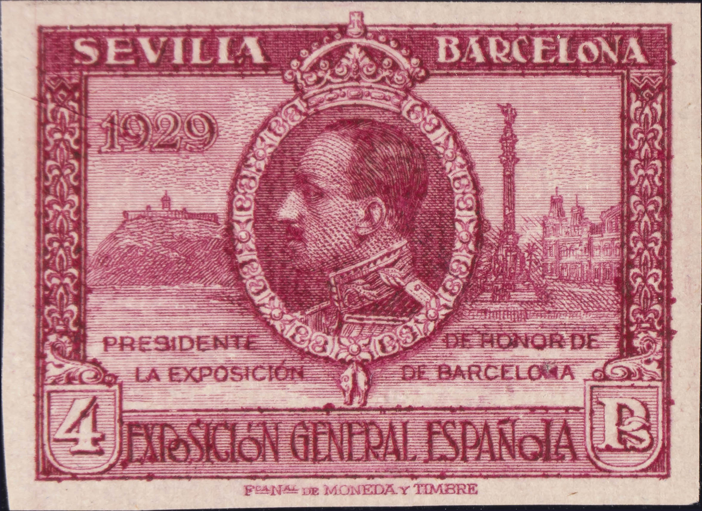 ★★ 445s. 1929. 4 pts lila rosa oscuro. SIN DENTAR. MAGNIFICO. Edifil 2015: +165 Euros