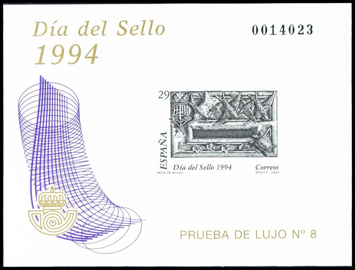 ★★ 31P. 1994. Prueba de Lujo. DIA DEL SELLO 1994. MAGNIFICA. Edifil 2020: 20 Euros