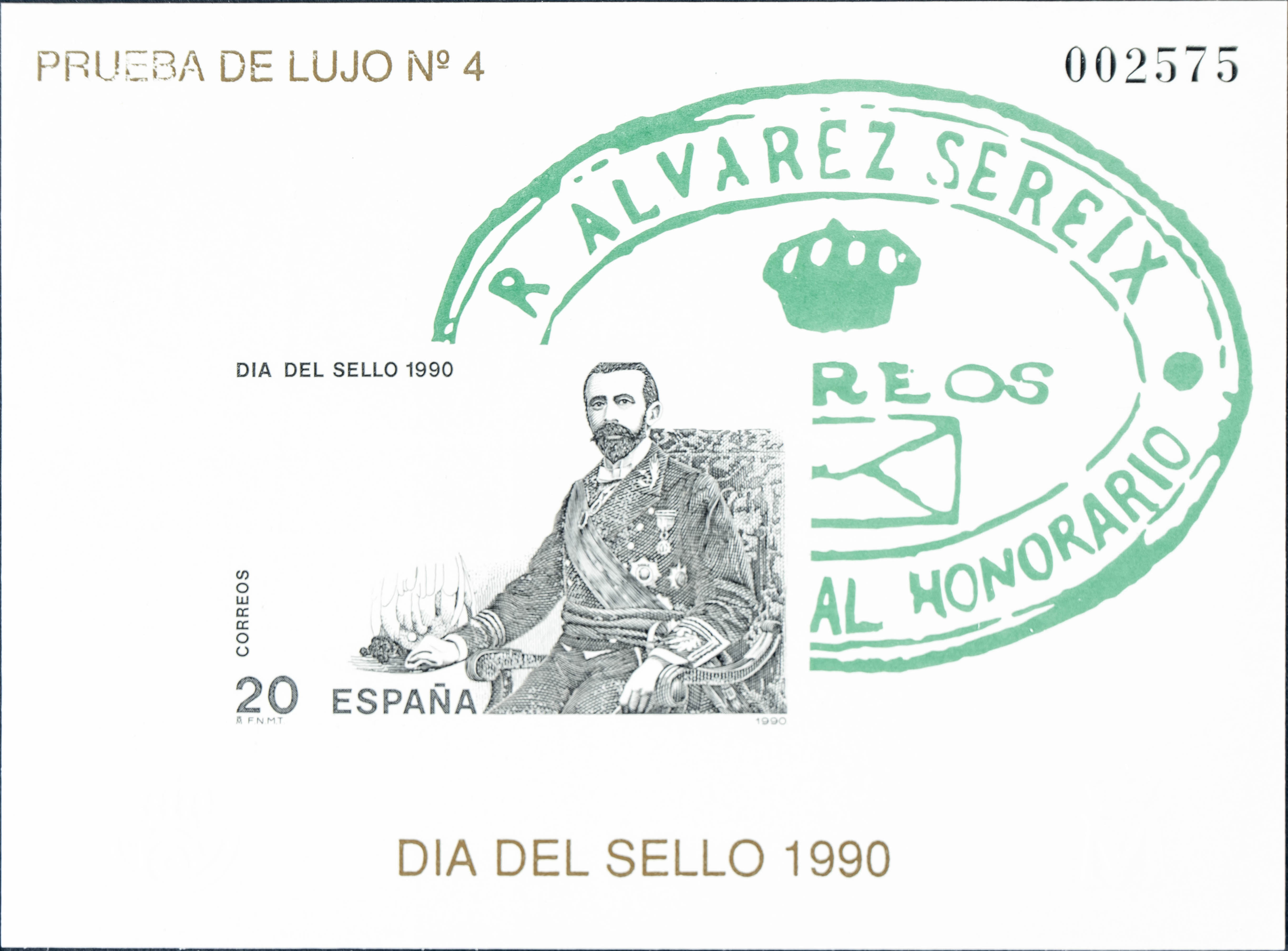 ★★ 20P. 1990. Prueba de Lujo. DIA DEL SELLO 1990. MAGNIFICA. Edifil 2020: 27 Euros