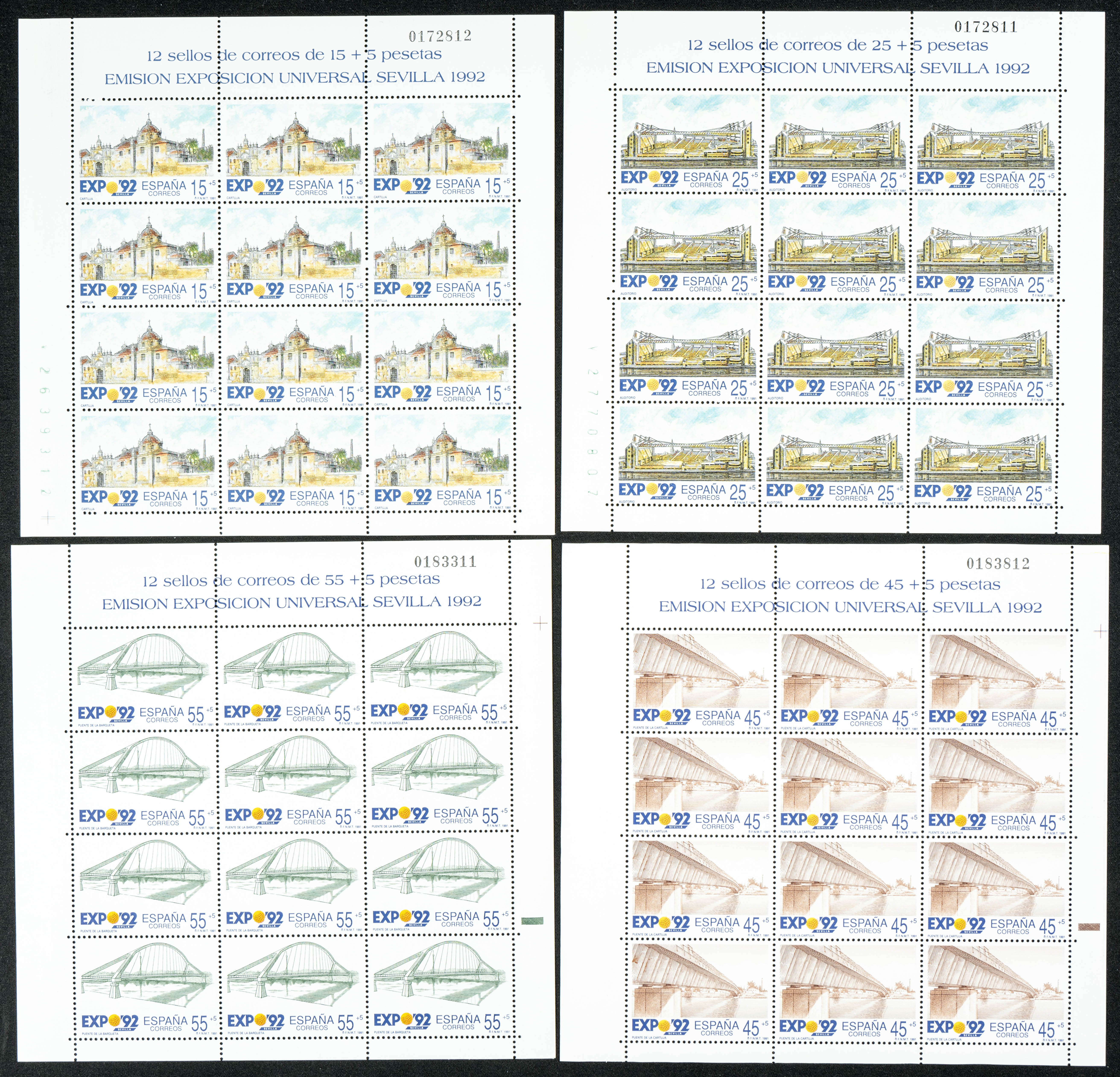 ★★ MP24/27. 1991. Serie completa en minipliegos de doce sellos. EXPO 92. MAGNIFICOS. Edifil 2020: 27,6 Euros