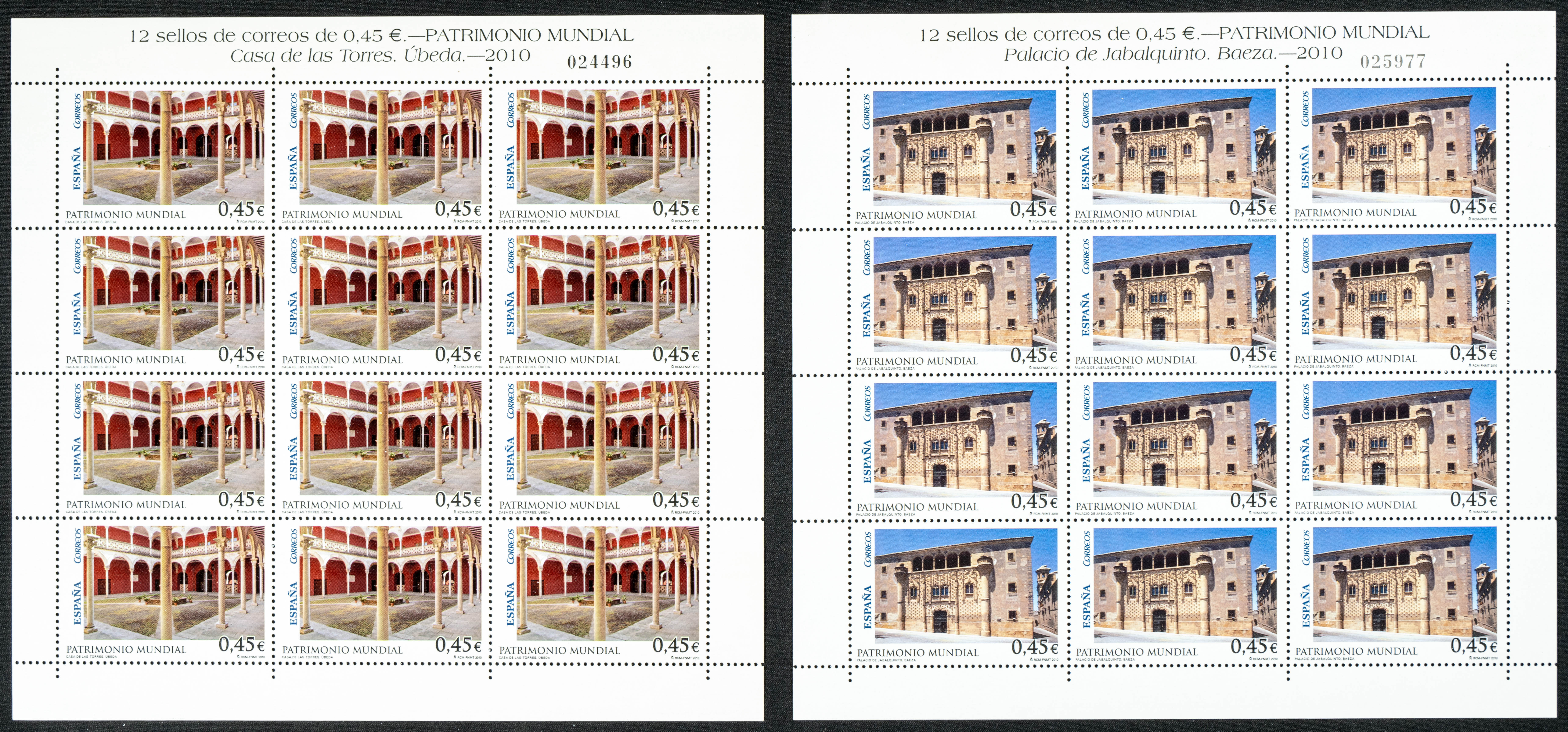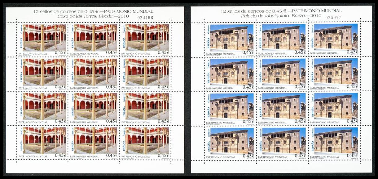 ★★ MP87/88. 2010. Serie completa en minipliegos de doce sellos. PATRIMONIO DE LA HUMANIDAD. MAGNIFICOS. Edifil 2020: 60 Euros