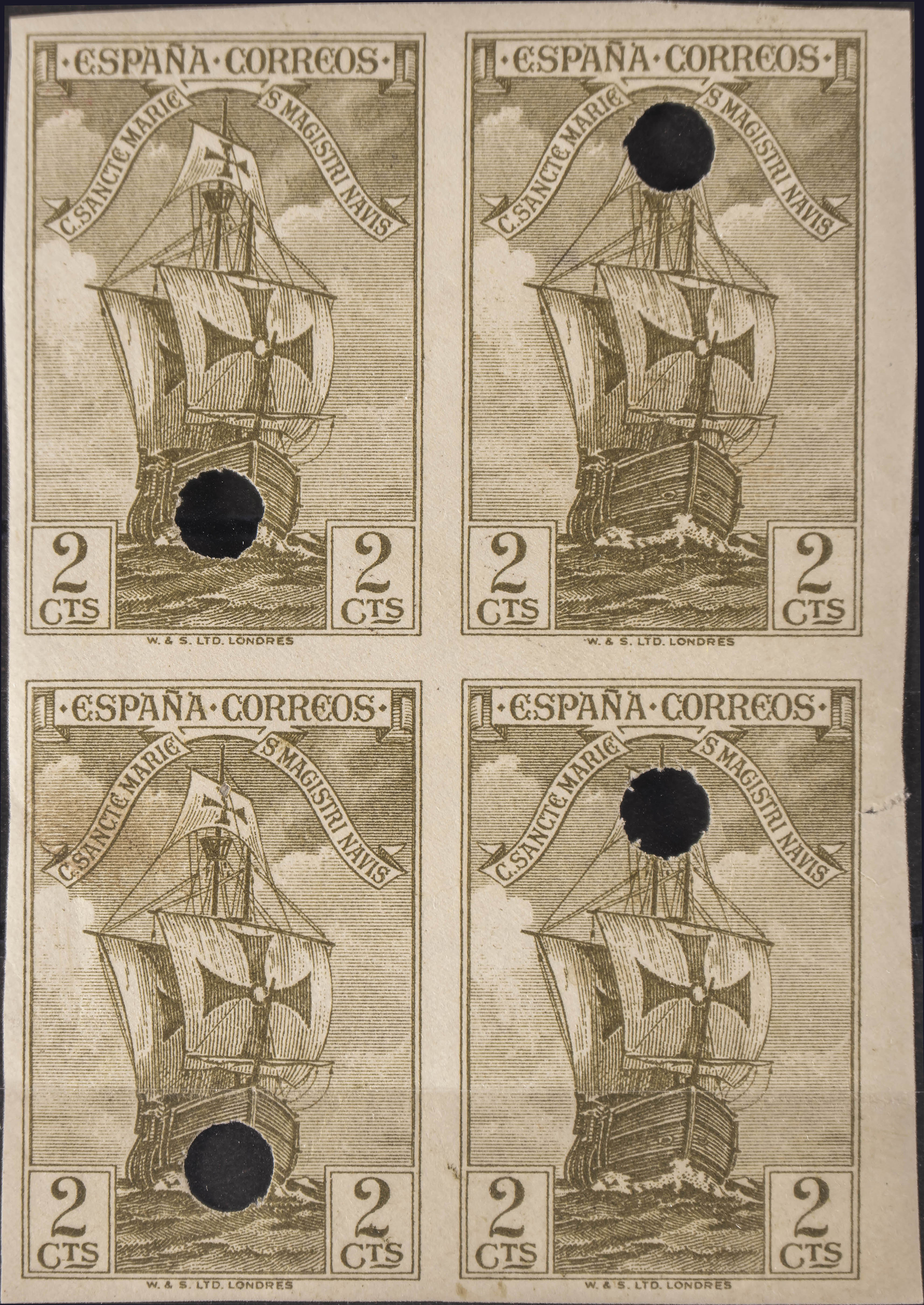★★ 533MTs. 1930. 2 cts verde oliva, bloque de cuatro. SIN DENTAR y TALADRO. MAGNIFICO.