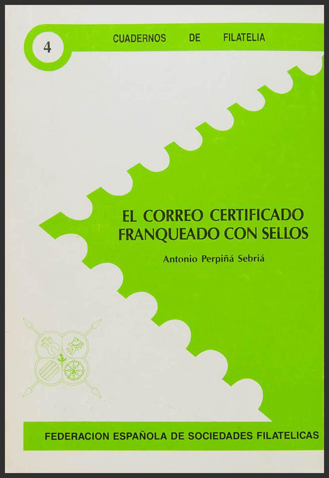 1989. Registered Mail Postmarked with Stamps. Antonio Perpiñá Sebriá. Philatelic Notebooks Collection No. 4. Spanish Federation of Philatelic Societies. Madrid, 1989.