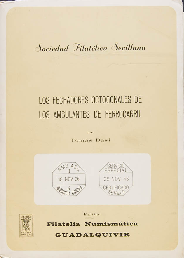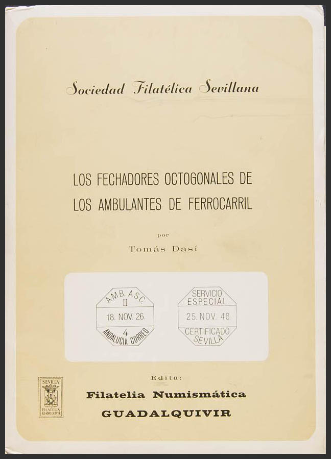 English 1979. The Octagonal Date Stamps of the Street Railway Vendors. Tomás Dasí. Seville Philatelic Society. Published by Guadalquivir Philately and Numismatics. Seville, 1979.