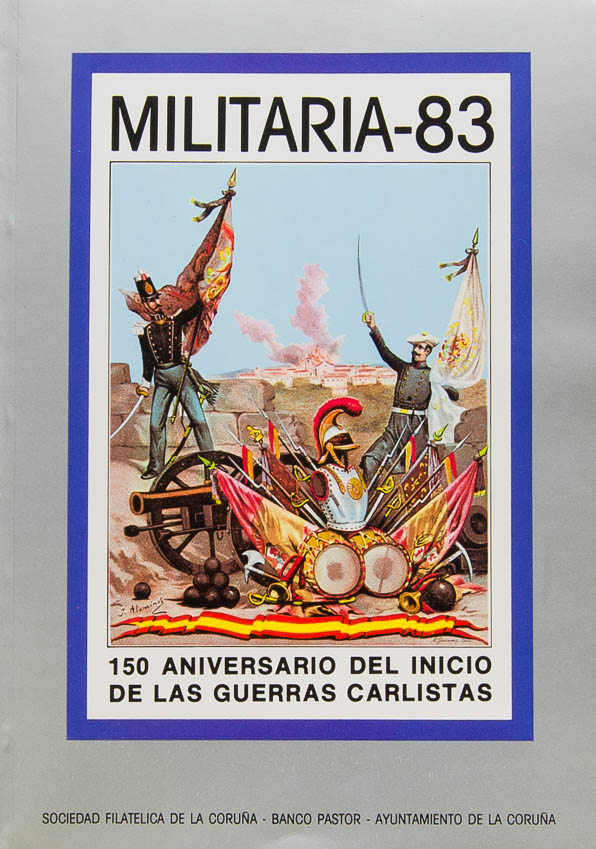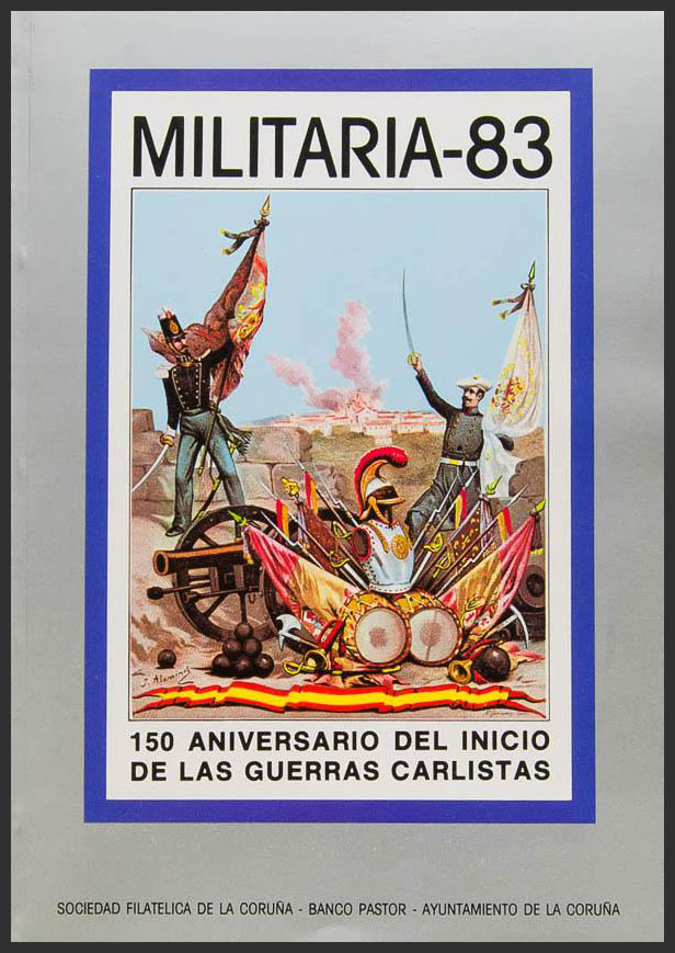 (1983ca). Three-volume set: MILITARIA: 150TH ANNIVERSARY OF THE START OF THE CARLIST WARS and POSTAL STUDY OF THE ARMY AND THE WARS OF SPAIN, two volumes. Armando Fernández Xesta. La Coruña, 1985.