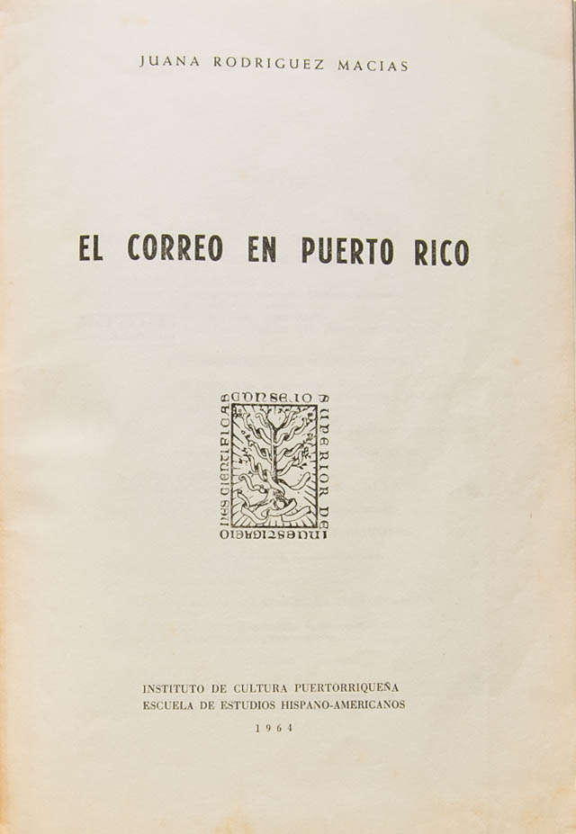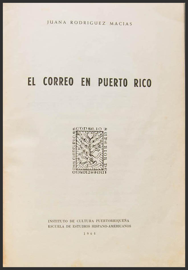 1958. THE POST OFFICE IN PUERTO RICO. Juana RodrÃguez MacÃas. School of Hispanic-American Studies. Seville, 1958. (very rare work)