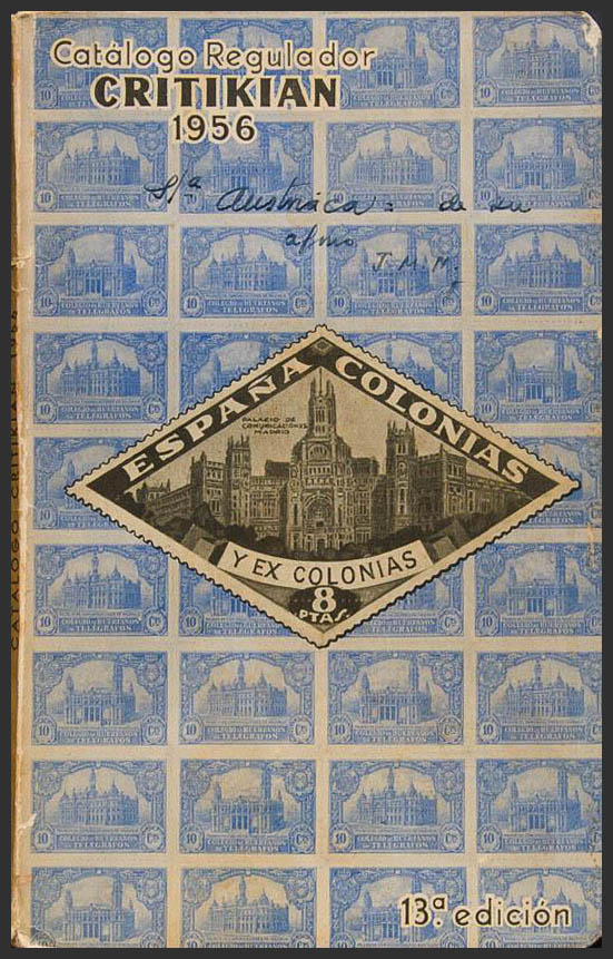 1956. CRITIKIAN REGULATORY CATALOGUE OF SPAIN, COLONIES AND FORMER SPANISH COLONIES 1956. 13th Edition. Madrid, 1956.