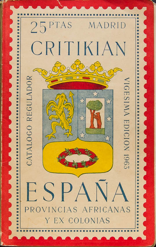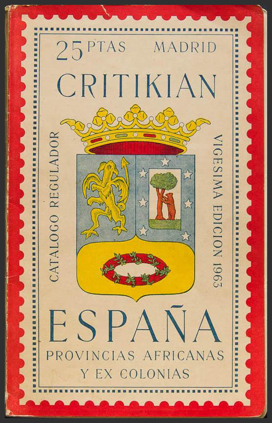 1963. CRITIKIAN REGULATORY CATALOGUE 1963 SPAIN, AFRICAN PROVINCES AND FORMER COLONIES. 20th Edition. Madrid, 1963.