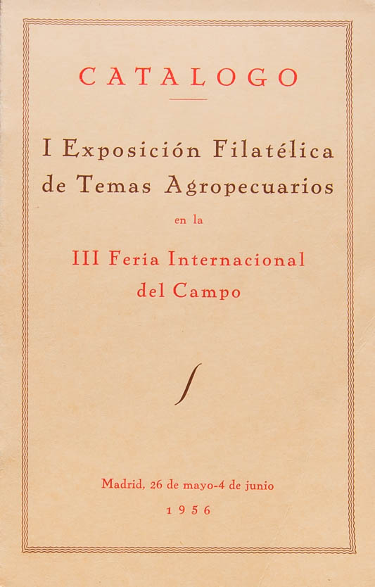 1956. Catalogue of the 1st PHILATELIC EXHIBITION OF AGRICULTURAL TOPICS AT THE 3RD INTERNATIONAL COUNTRY FAIR, held from May 26 to June 4, 1956. Madrid, 1956.