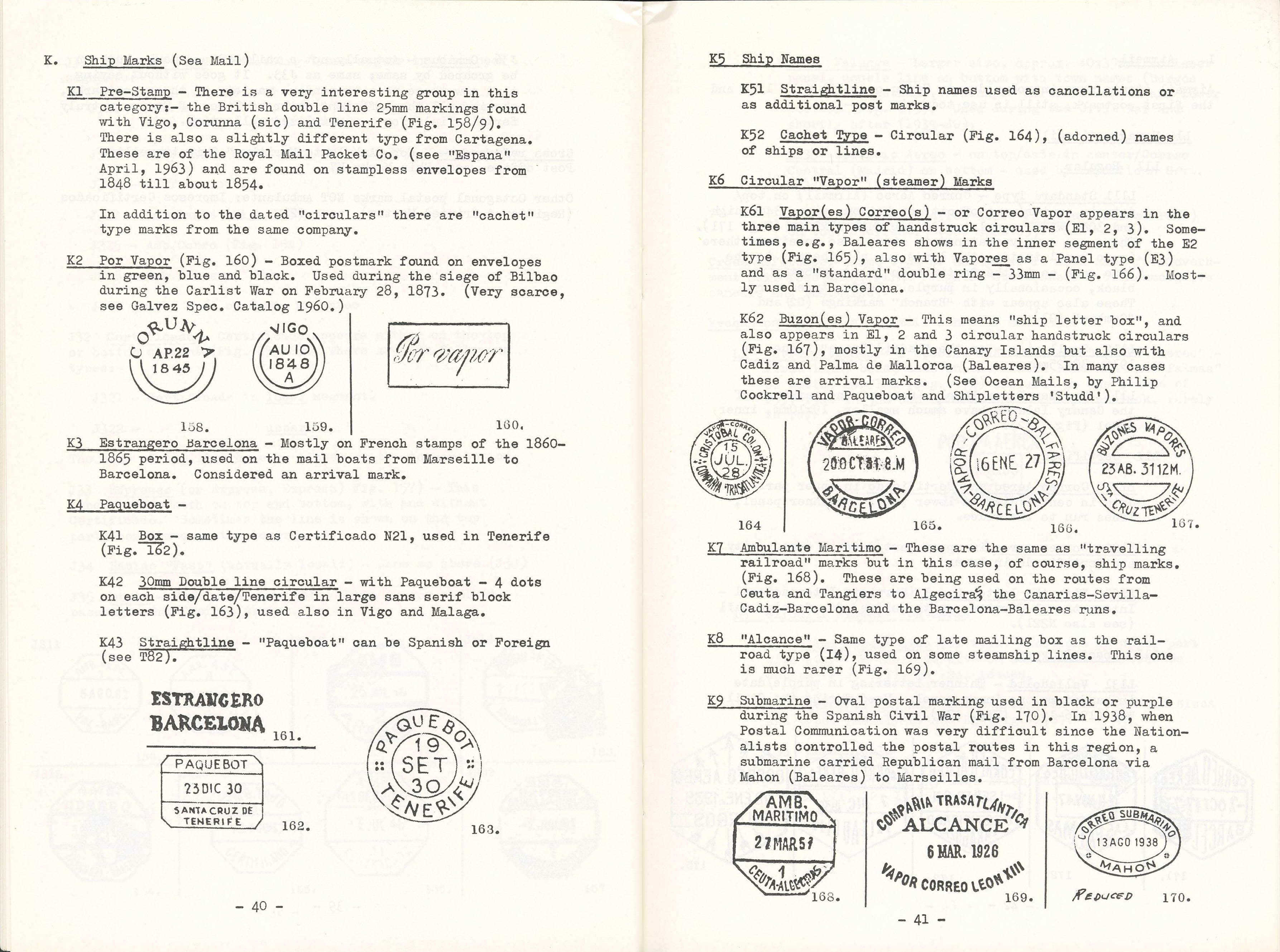 English (1960ca). Billig's Handbook on Postmarks (Volume No. 13) THE POSTAL MARKINGS OF SPAIN. Theo Van Dam. New York, 1960ca. (Very interesting book of Spanish postmarks)