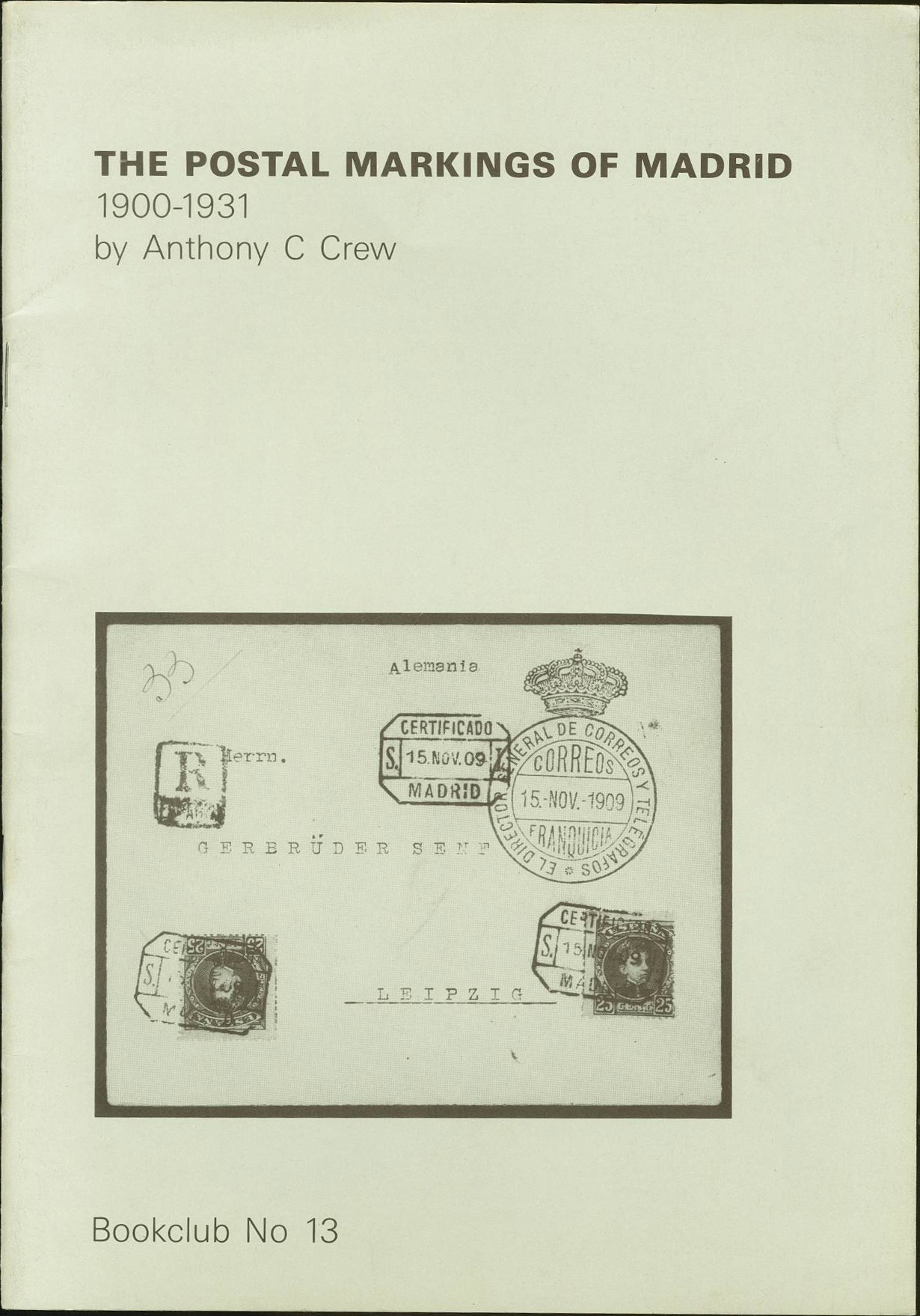 1984. THE POSTAL MARKINGS OF MADRID 1900-31. Anthony C. Crew. Hove, 1984.