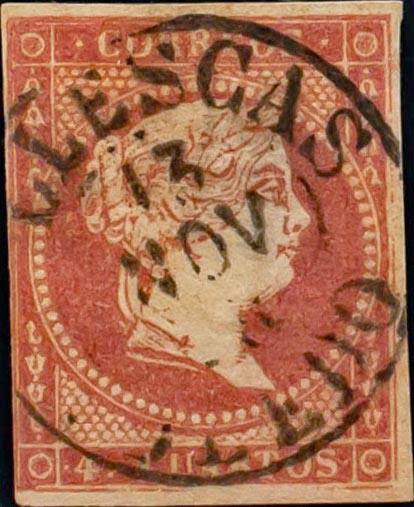 48. 1856. 4 cuartos red. Postmark BARCARROTA / BADAJOZ. MAGNIFICENT.