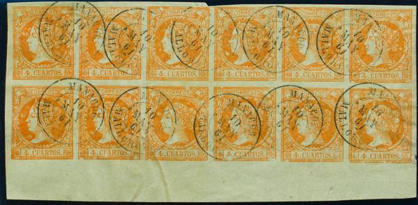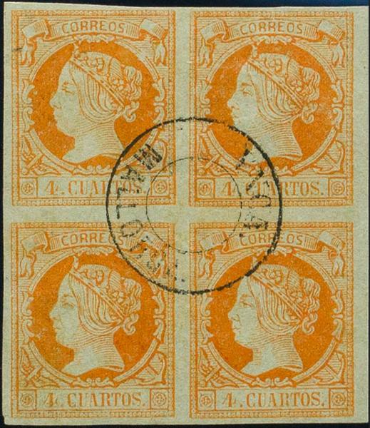 (★) 54. 1860. 19 cuartos chestnut. Very intense color and wide margins. MAGNIFICENT AND VERY RARE IN THIS SPECTACULAR QUALITY. Certificate GRAUS and COMEX.