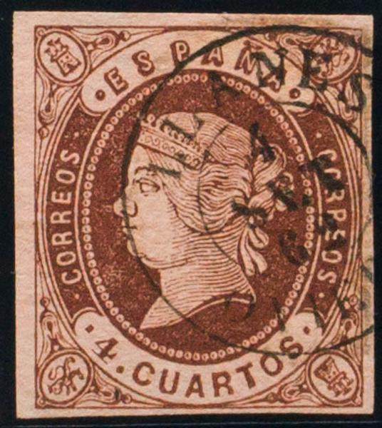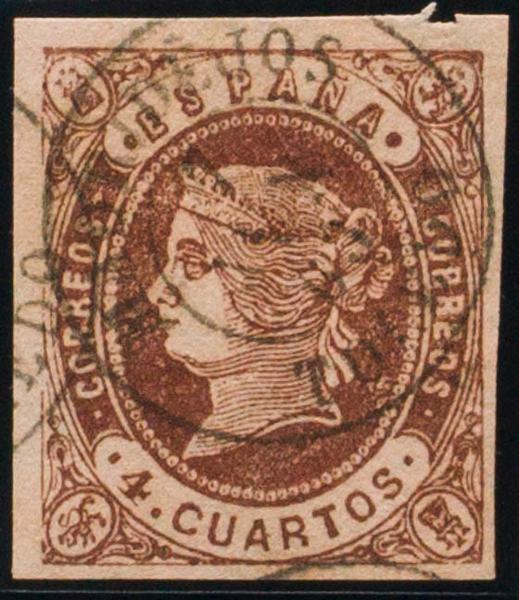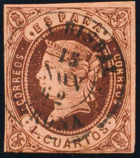 58. 1862. 4- cuartos chestnut. Postmark LA BISBAL / GERONA. MAGNIFICENT.