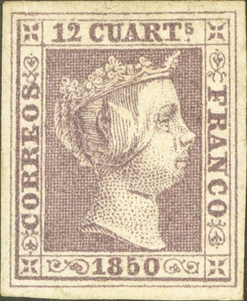 ★ 2. 1850. 12 lilac cuartos . Intense color and large margins. MAGNIFICENT.