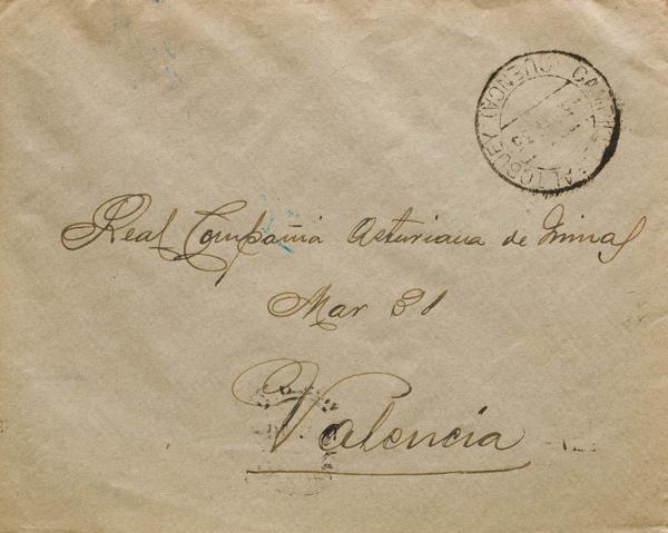 1942. TABERNES DE VALDIGNA (VALENCIA) to VALENCIA (text inside). Mark of the ORDINARY courier / CLAR LANTERN, 7. MAGNIFICENT AND EXTREMELY RARE. Certificate GRAUS.