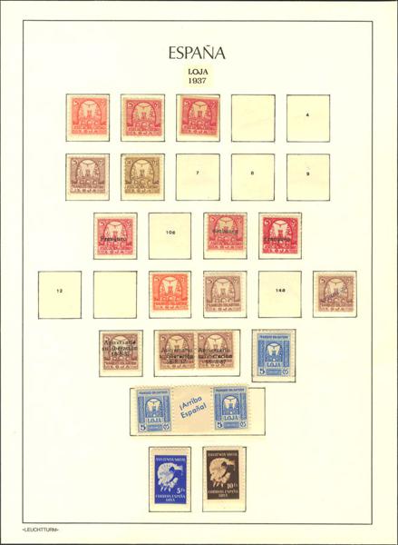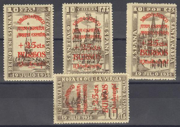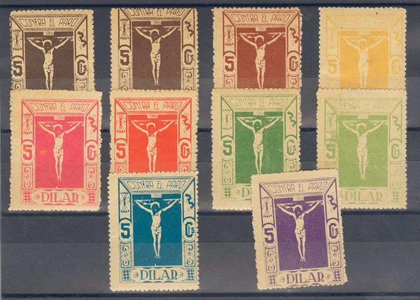 ★(1936ca). Spectacular set of local charitable stamps from Tafalla, toothed and untoothed and some overloaded (they are probably all the known ones). TO EXAMINE.