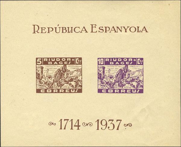 ★1937. Block sheet. RIUDOR OF BAGES (BARCELONA). MAGNIFICENT AND RARE. (Fesofi 6 and Allepuz 22)