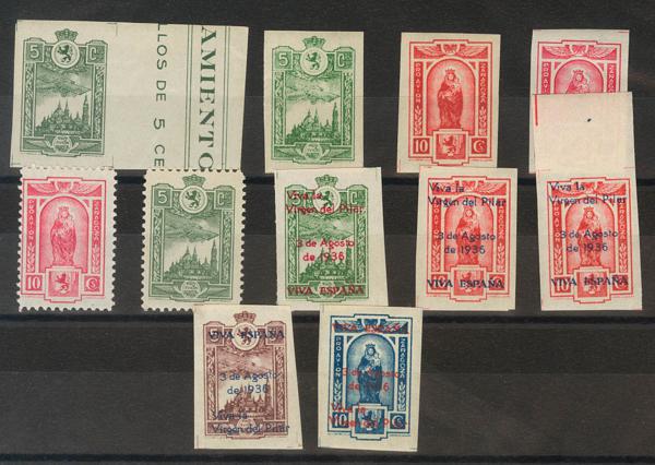 ★★/★1936. Spectacular set of Charitable Local stamps of the Virgen del Pilar de Zaragoza, including the serrated and non-serrated ones. TO EXAMINE.
