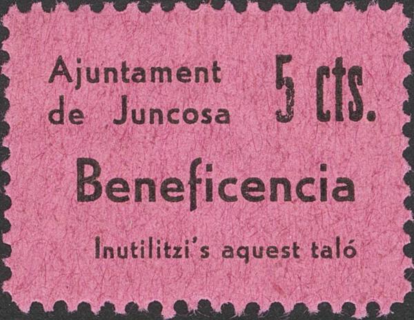 ★1936. 5 cts black on lilac JUNCOSA (LERIDA). MAGNIFICENT AND RARE. (Allepuz 6, Fesofi 6)